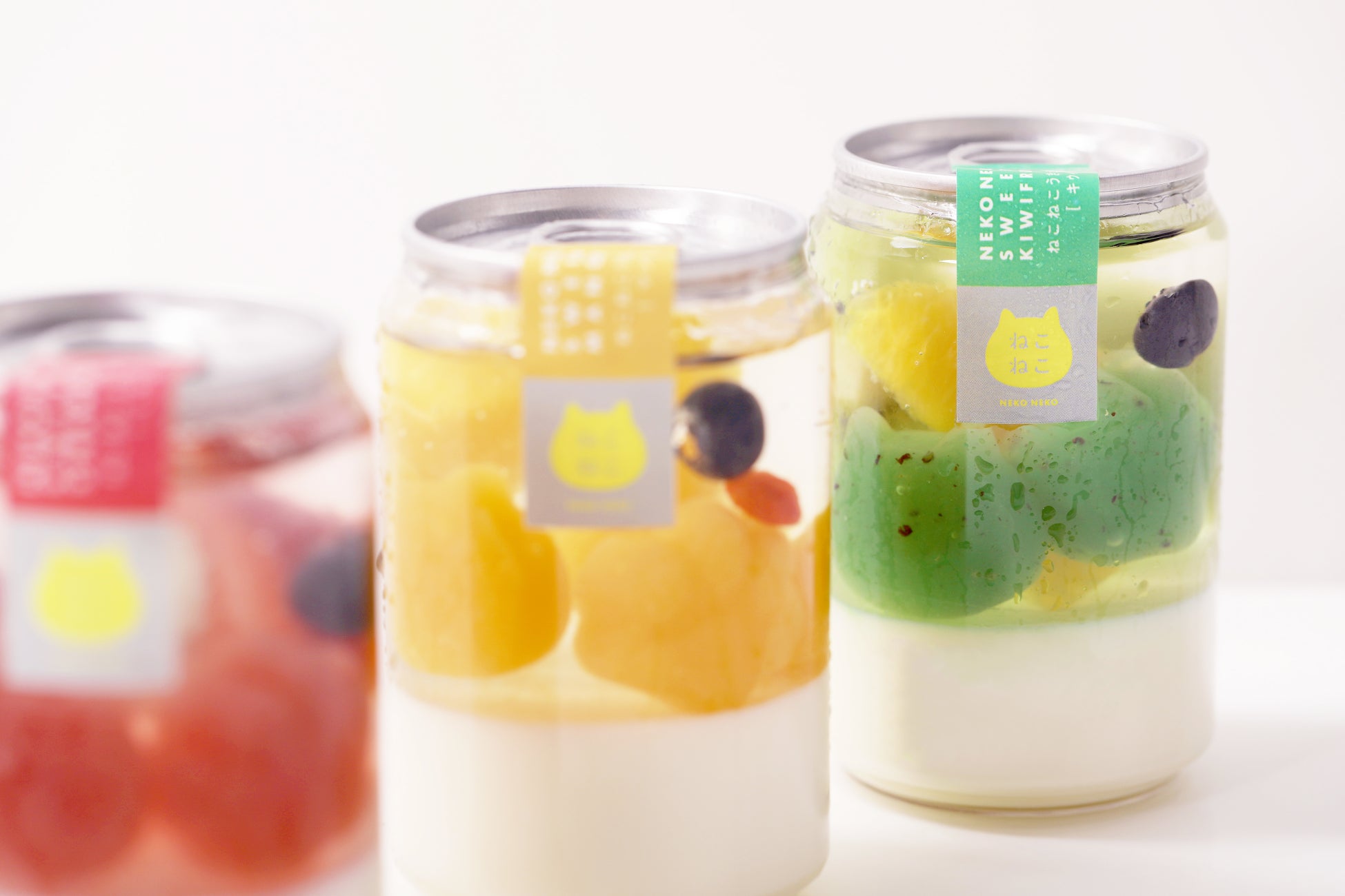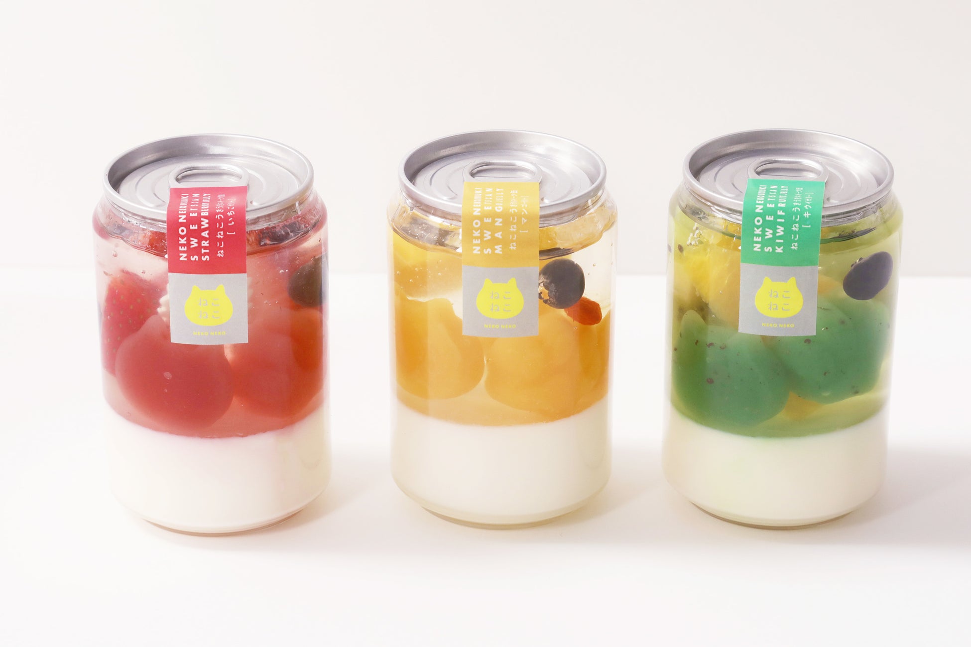 - 【7月1日より新発売!】ごろごろフルーツの冷んにゃりスイーツ「ねこねこうきうきスイーツ缶」