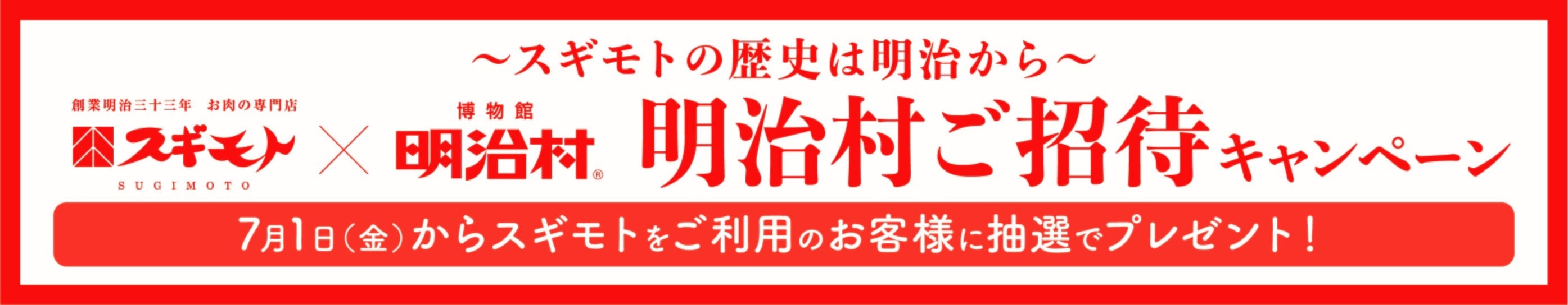 お肉の専門店スギモト 明治村ご招待キャンペーンをスタートします。