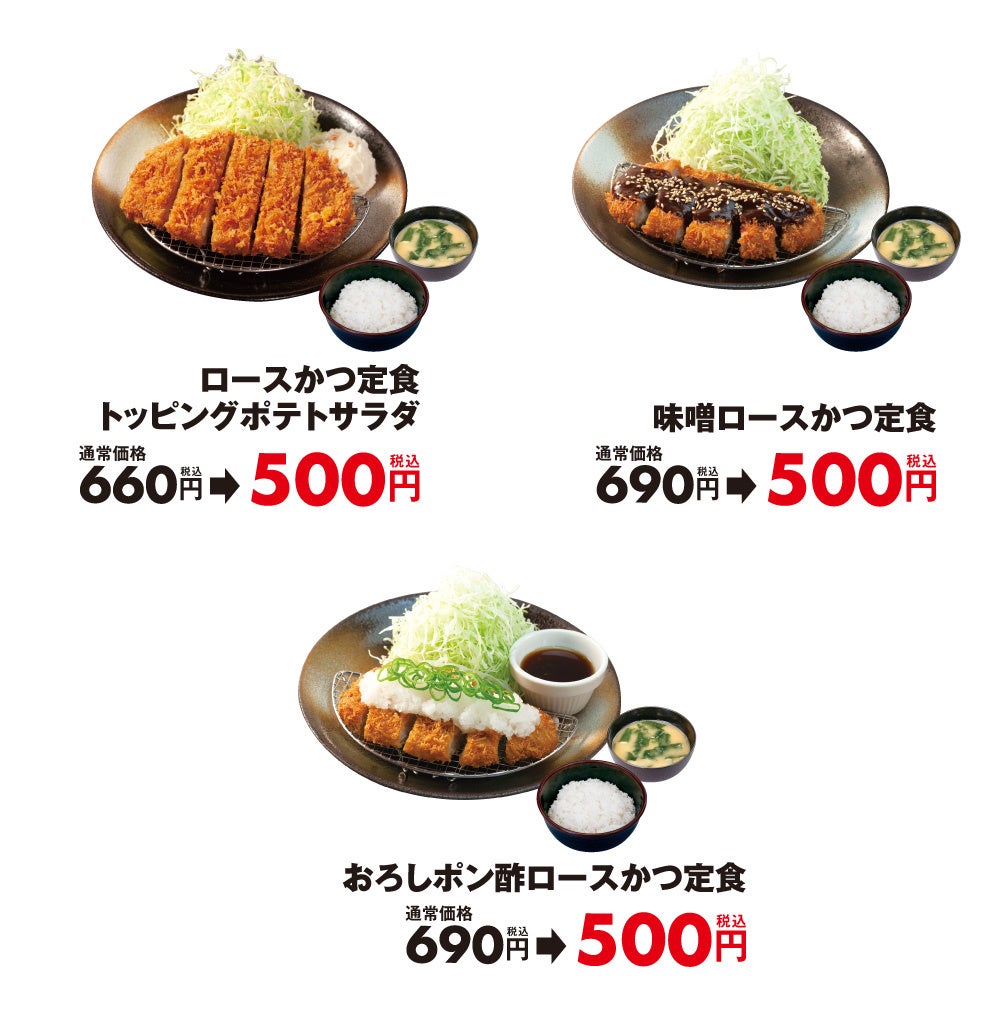 1週間限定で、王道人気のロースかつ定食関連メニューがすべて500円で楽しめる
