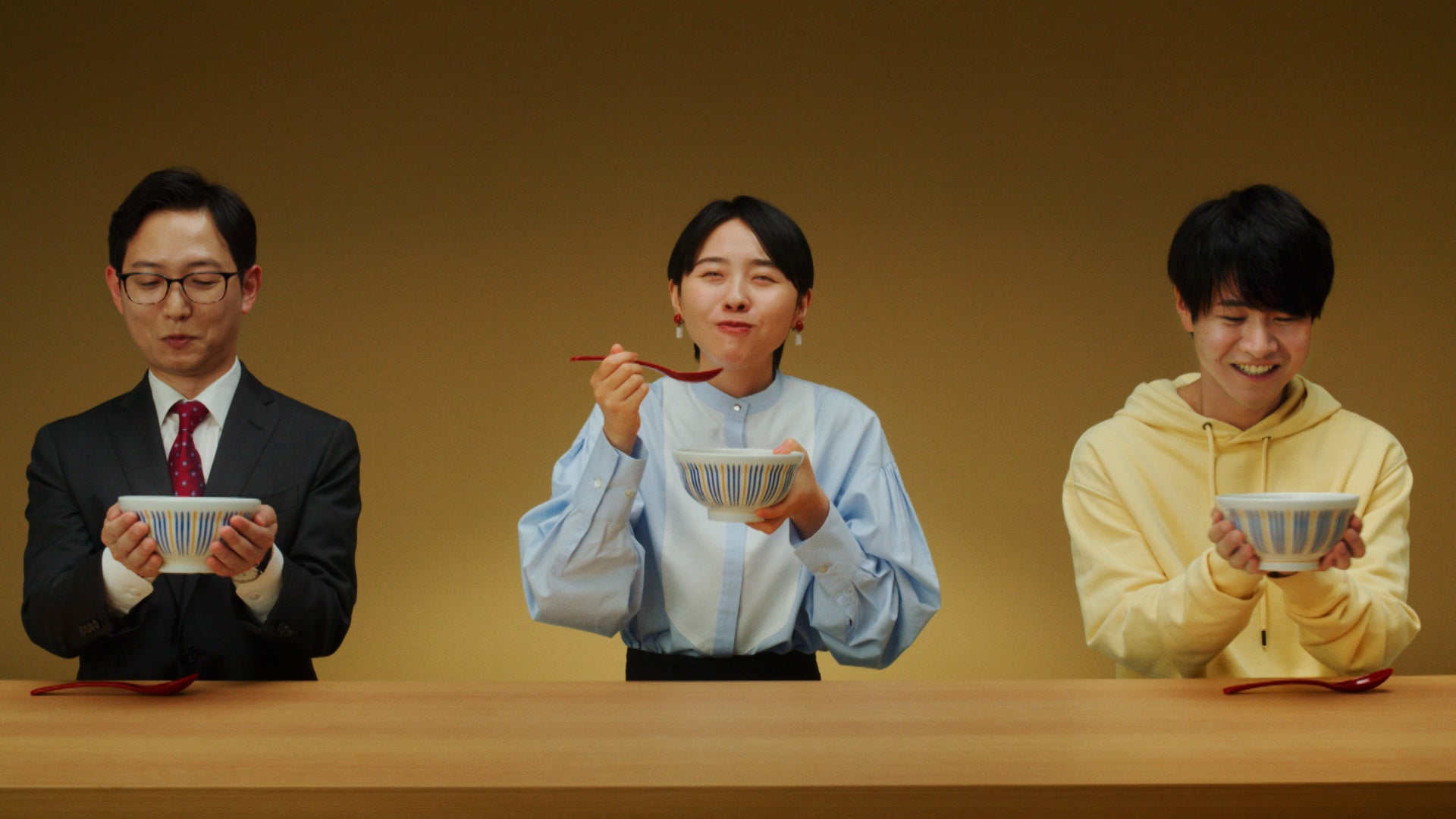 新TVCM「ふるわせて」篇では、大ぶりにカットした食べ応えのある鶏肉と特製の割り下、鶏を育てる飼料からこだわった濃厚なこだわり卵が絡み合う、自慢の“ふわとろ”親子丼がプルプルとふるえます。このふわとろ具合が、“いい親子丼”の証です。一口食べれば、思わず「ふわとろ~」と笑顔に。