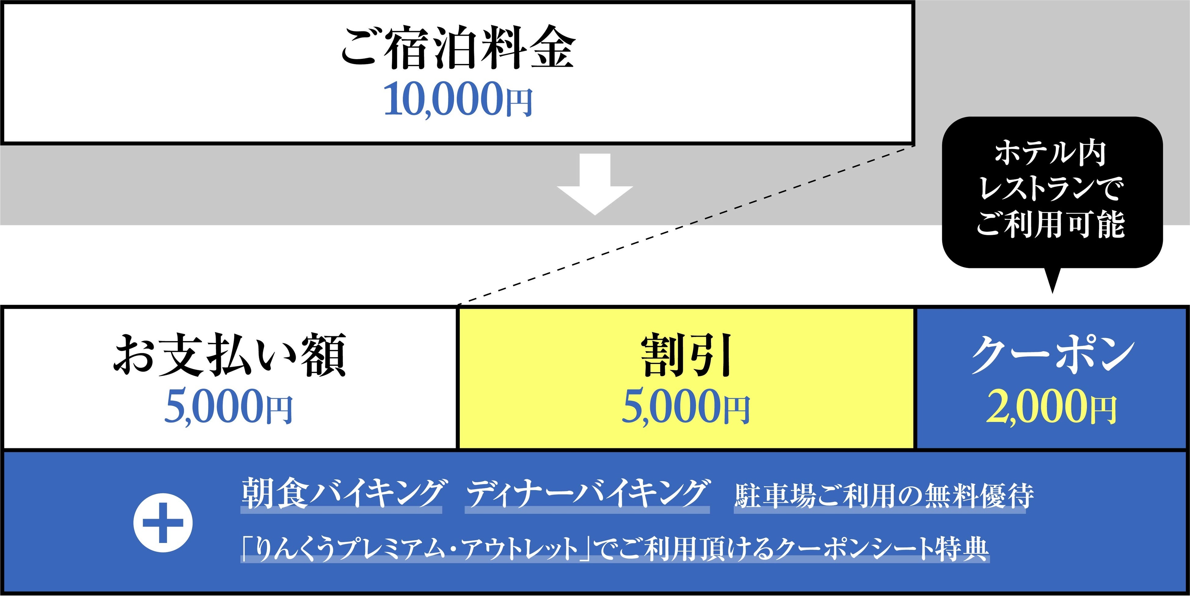キャンペーン適用により宿泊プラン料金が最大5,000円OFF、お1人様1泊につき最大2,000円のクーポンが付与されます。