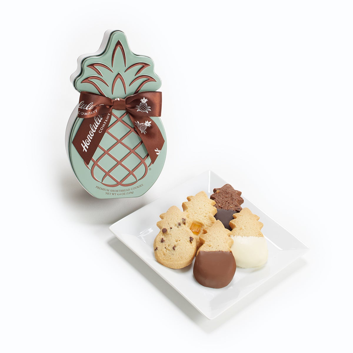 思わず集めたくなるようなかわいらしい缶。パイナップル、5種類の人気フレーバー、計9枚入りのショートブレッド・クッキー。