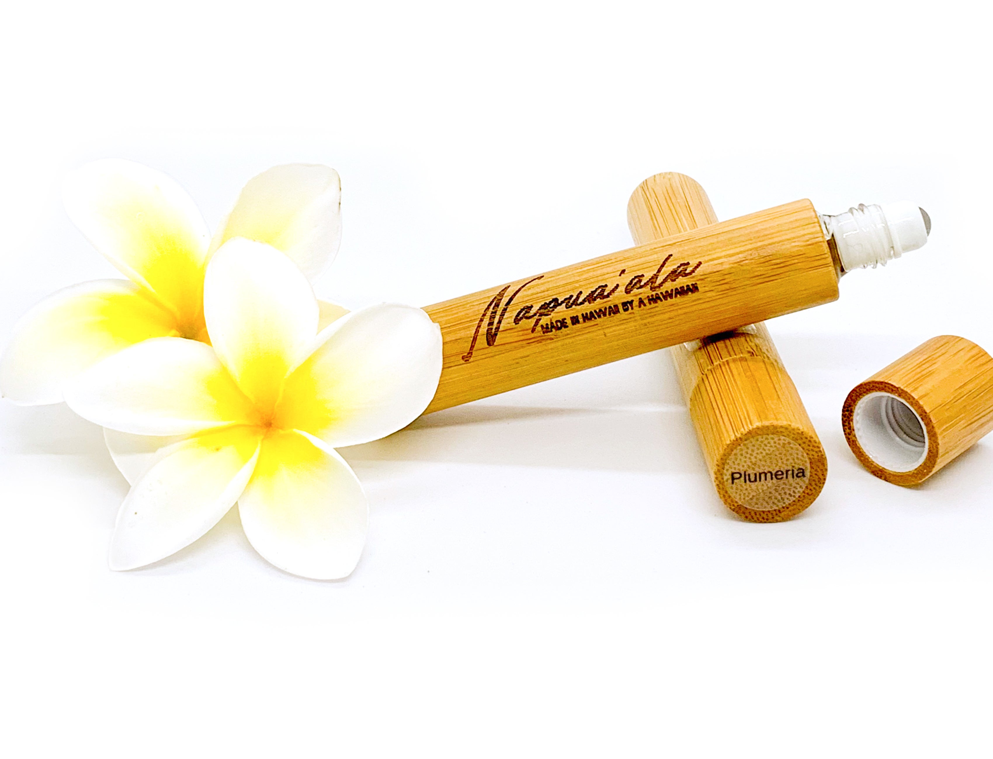 1つ1つ手作りしたパフューム。甘くやわらかな香りはフラダンサーのレイや髪飾りを思わせます。