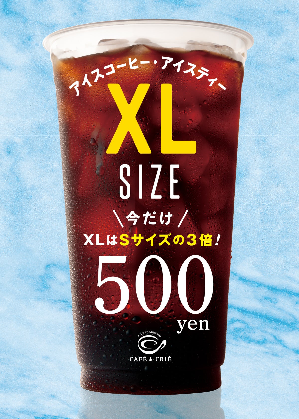 7月6日(水)〜10月4日(火)までの期間限定で、アイスコーヒーとアイスティーのXLサイズが登場します。ワンコイン500円でSサイズの3倍の量をお楽しみいただけます。すっきりと飲みやすく、お食事やデザートとあわせるのもおすすめです。