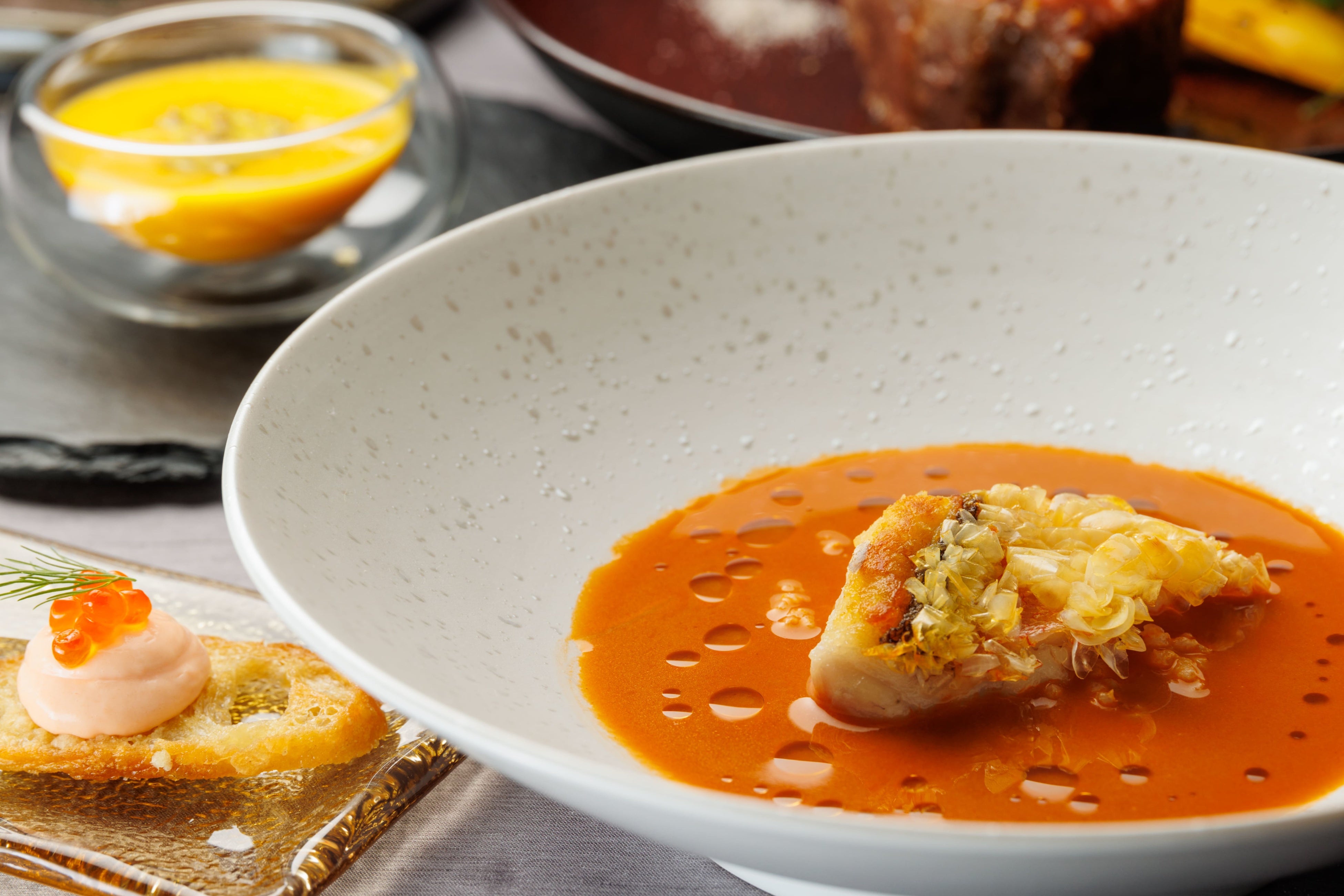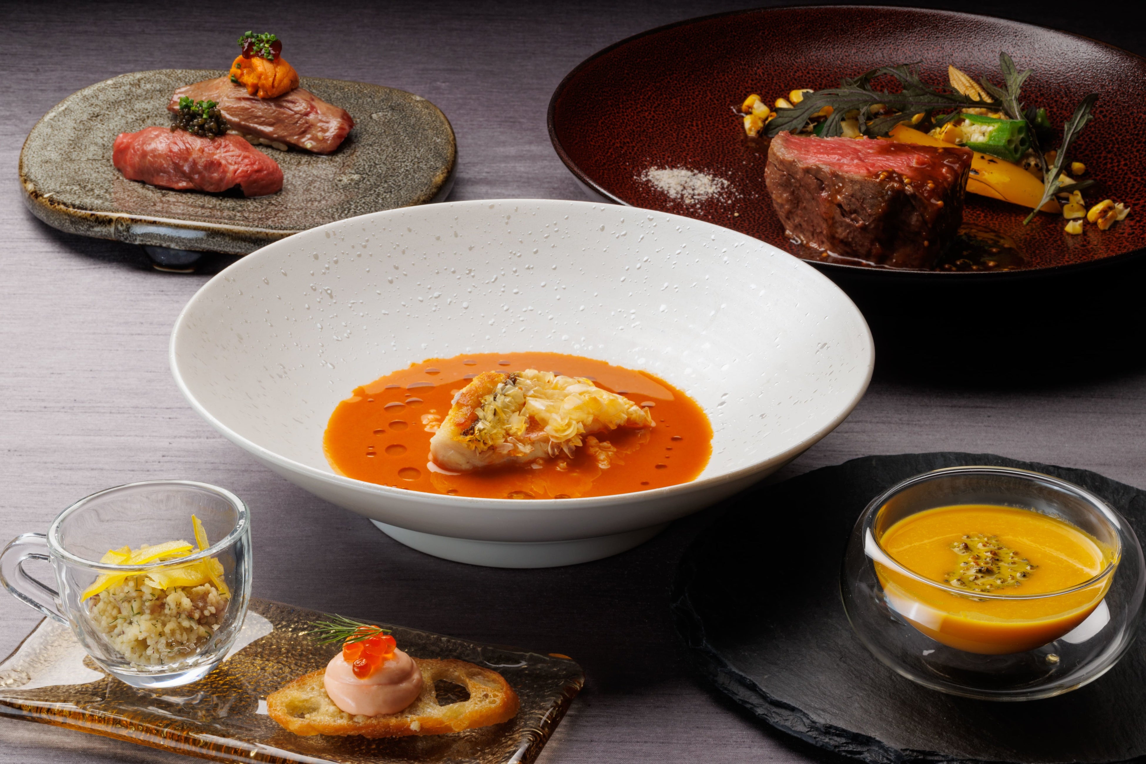肉フレンチのコースでも特に人気の皿を残しつつ、魚介で魅せる上品なモダンフレンチを盛り込んだ新コース。