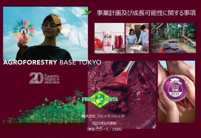 この度、株式会社フルッタフルッタ(本社:東京都千代田区 代表取締役CEO:長澤 誠、以下当社)は、2022年6月30日(木)に東京証券取引所に開示いたしました『事業計画及び成長可能性に関する事項』におきまして、アサイーリバイバルプロジェクトの内容および、各種事業戦略を主軸とした5か年計画を発表いたしました。