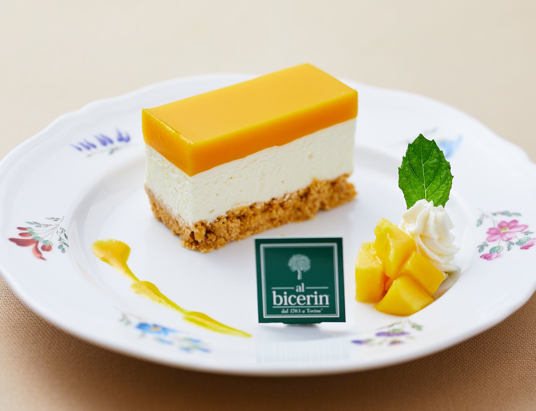 甘酸っぱいマンゴーゼリーと濃厚なレアチーズ、クッキークラムの3層に仕立て、マンゴーとクリームチーズで夏を感じられる爽やかなケーキに仕上げました。