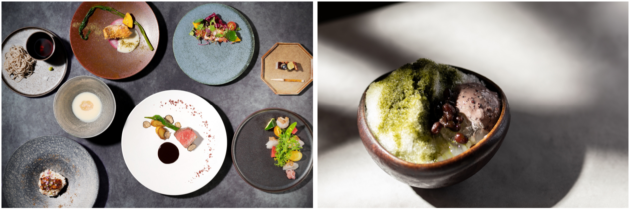 「高宮庭園茶寮」のレストランでご提供している料理は、九州の厳選された素材を用いて、日本ならではの出汁・茶などの食文化を大切にしながらも、様々な技法でアレンジをした創作料理です。