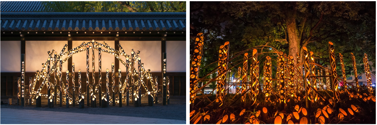 社会問題化した放置竹林の竹に穴をあけ、あかりを灯す「竹あかり」を演出制作・プロデュースしている。
