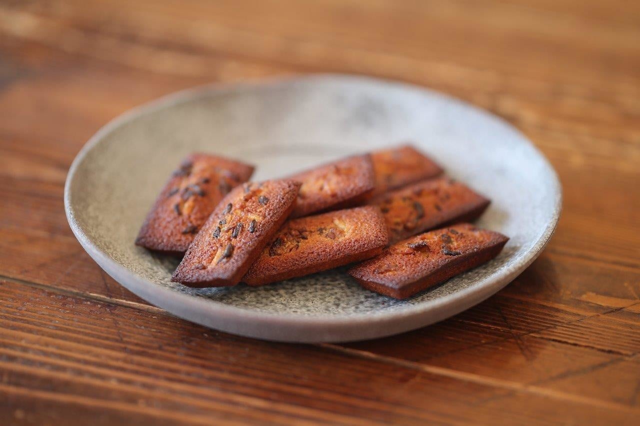 松澤製糸所(長野県下諏訪町)の“はね出し”生糸のシルクパウダーを焼菓子に入れました。シルクパウダーに含まれるグリシンは血中コレステロールを下げ、睡眠改善の効果も期待されています。アラニンは肝機能強化に必要な成分。またセリンはアルツハイマー予防や睡眠改善の可能性について研究が進んでいます。ヘーゼルナッツの香ばしさや独特のナッツ感が後を引きます。皮ごとすりおろしたレモンの爽やかなフレーバーで、午後のティータイムにおすすめです。
