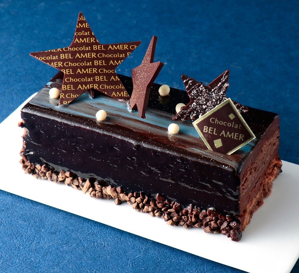 七夕の夜空をデザイン。ベルアメールオリジナルのビターチョコに、天の川をイメージした青いラインやカラフルな星をデコレーション。