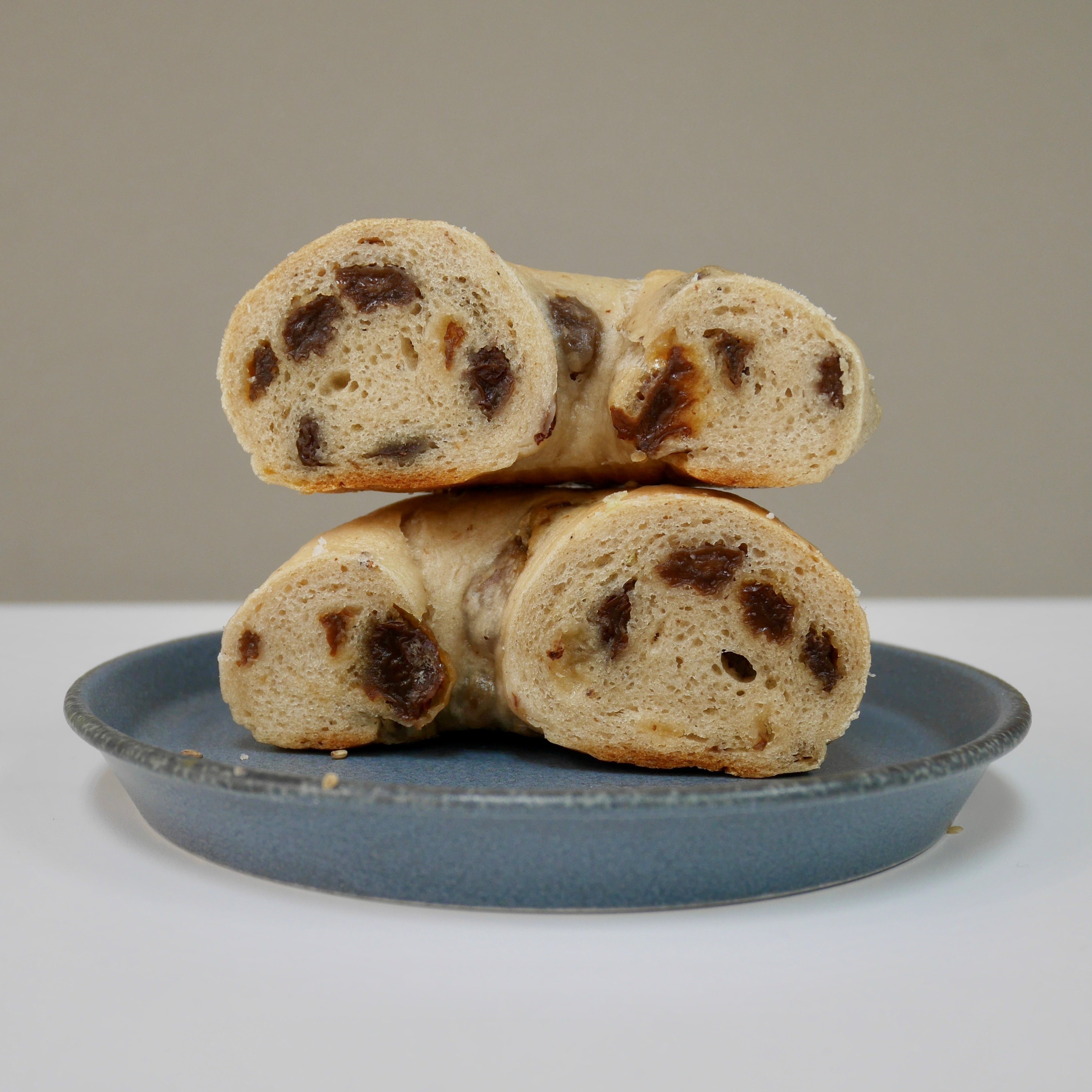 国内工場で選別した砂糖・オイル不使用、無添加のカリフォルニアレーズンをプレーン生地にたっぷりと混ぜ込み焼き上げました。カリフォルニアの太陽をいっぱいに浴びたレーズンは粒がふっくらと大きく、深い味わいがあります。レーズンには食物繊維、鉄分、カリウム、ポリフェノールなど女性に嬉しい栄養成分がたくさん含まれています。