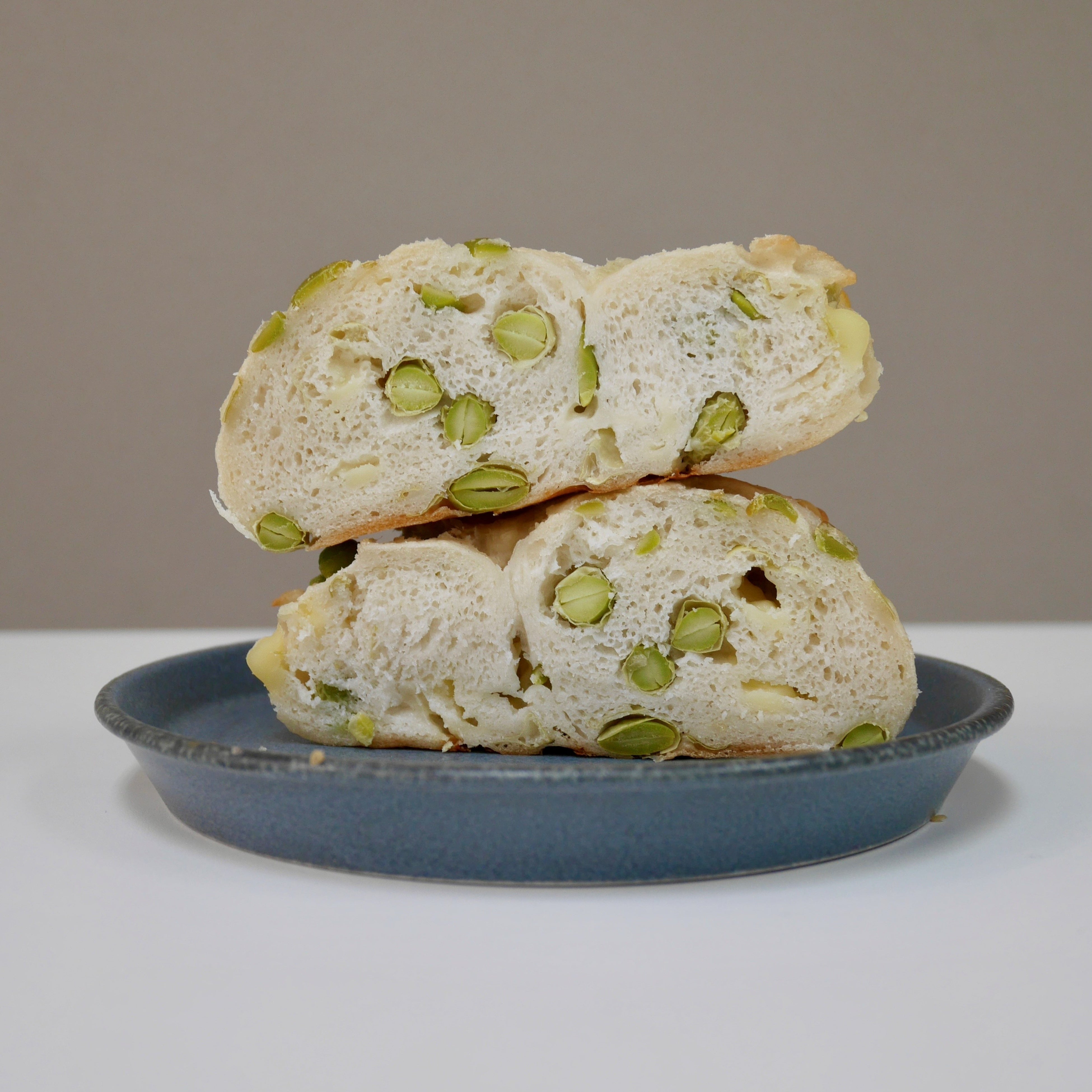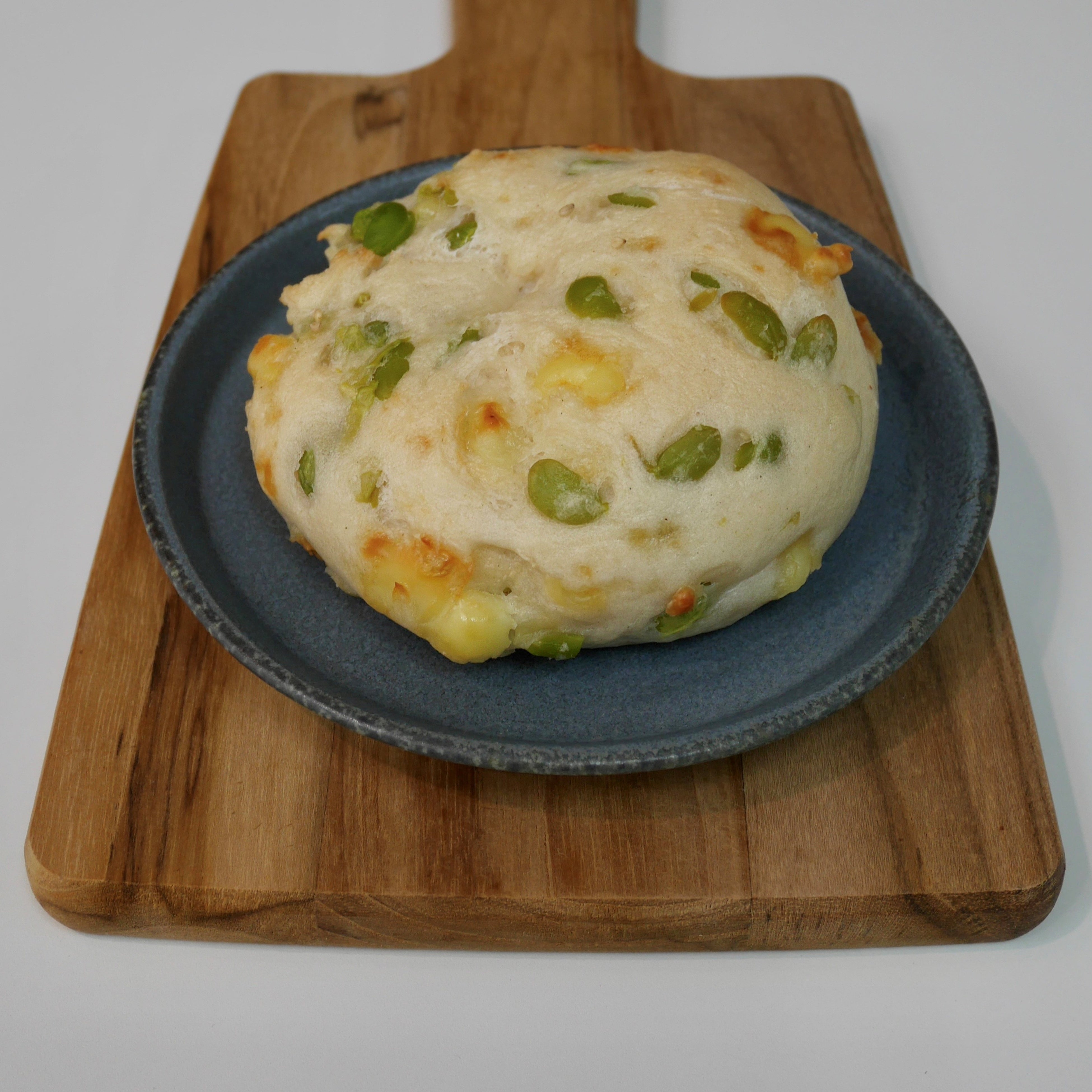 今が旬の「枝豆」とチーズをプレーン生地に混ぜ込み焼き上げました。枝豆にはタンパク質、食物繊維、ビタミンB1・B2、葉酸、鉄、カリウムなどの栄養素が含まれています。朝食やランチはもちろん、お酒のおつまみにもお勧めの一品です。