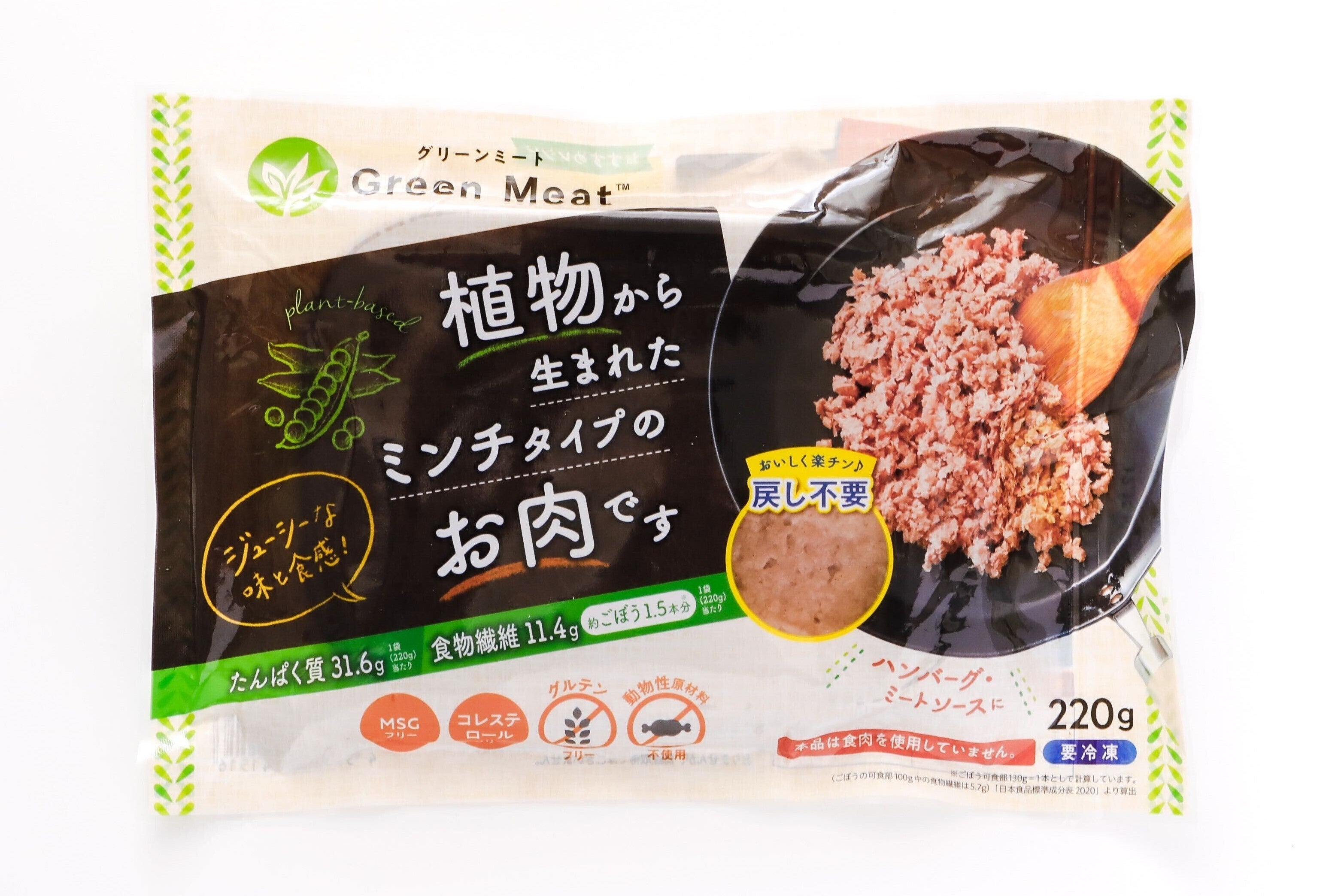 グリーンカルチャー株式会社が 2021年4月に外食事業者向けに販売を開始した「Green Meat™️」は、大豆ミートとは異なり、当社の独自技術に基づき大豆たんぱく等を原料とした動物性原料不使用の植物肉で、お肉に近い満足感や美味しさを感じる製品です。ミンチ状のため畜肉と同様に様々なレシピに使用することができます。調理方法次第で牛肉、豚肉、鶏肉料理など肉の種類に縛られず調理しやすいことから好評いただいており、環境・健康に配慮したサスティナブルな植物肉として多くの飲食店から選ばれています。
