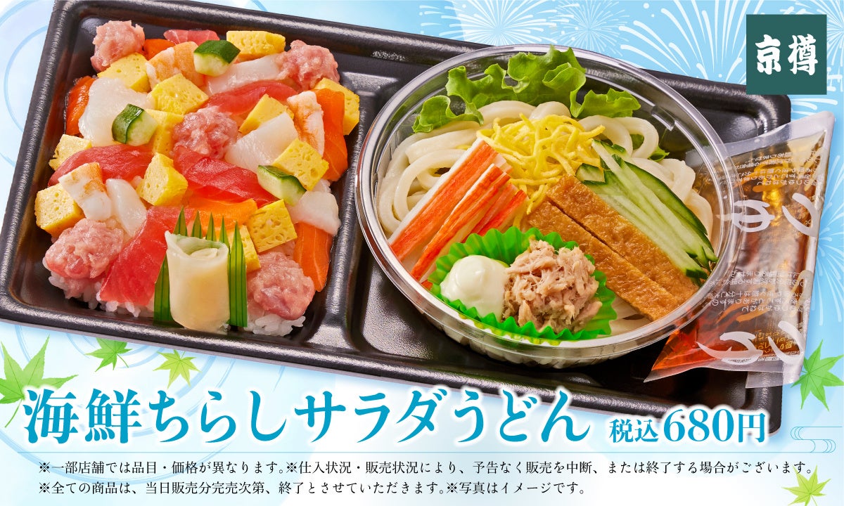 株式会社 京樽(本社:東京都中央区、代表取締役社長:堀江 陽)は、お持ち帰り鮨専門店「京樽」にて、7月4日(月)より夏季限定の商品として「海鮮ちらしサラダうどん」の販売を開始いたします。