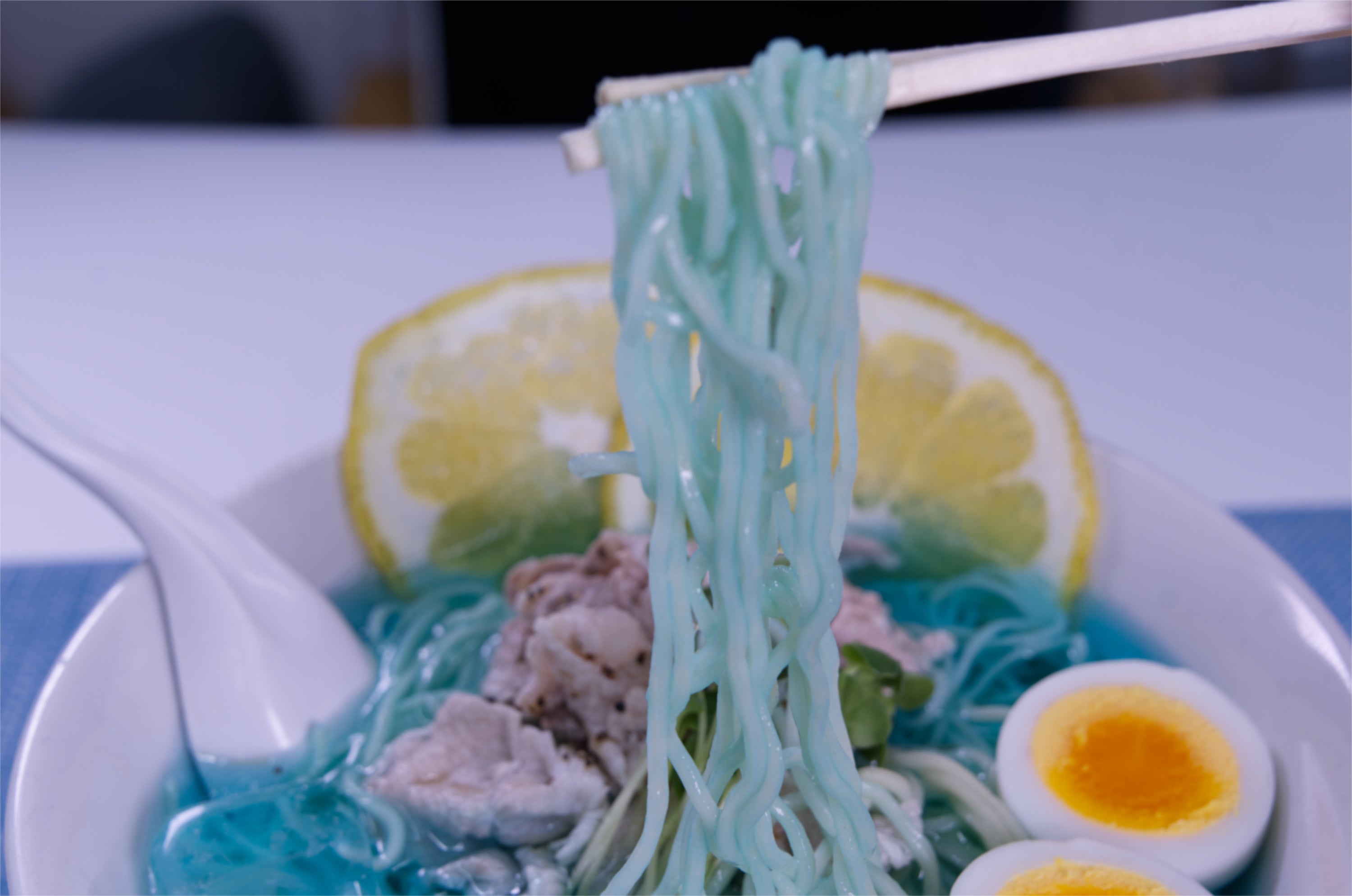 「海がきれいな夏の糸島にぴったりのラーメンを作りたい」という想いからマリンブルーの冷やしラーメン作りを始めました。