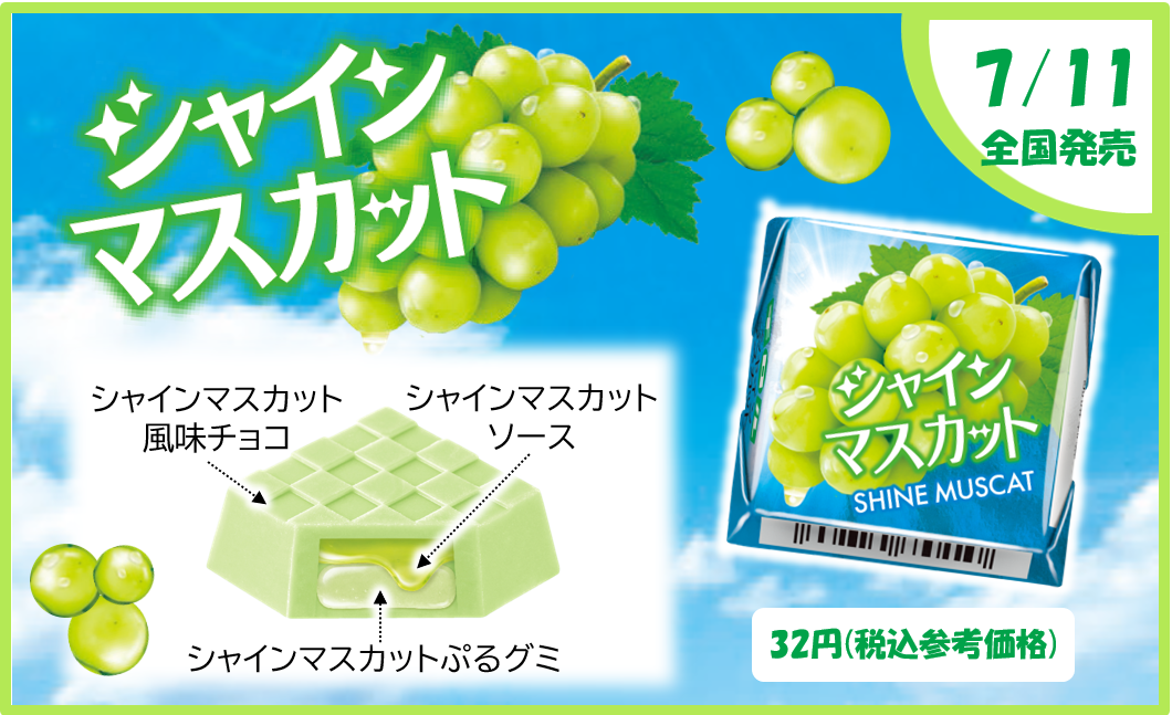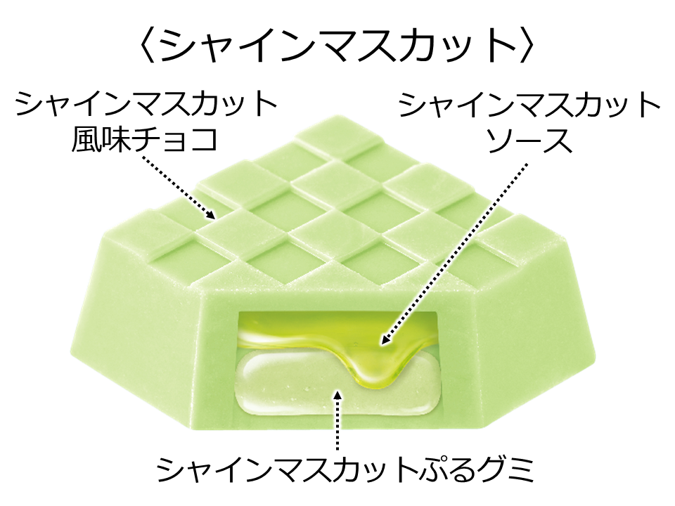 ぷるぷるのシャインマスカットグミとフルーティーなソースで、本物の果実のようなジューシー感を再現しました。
