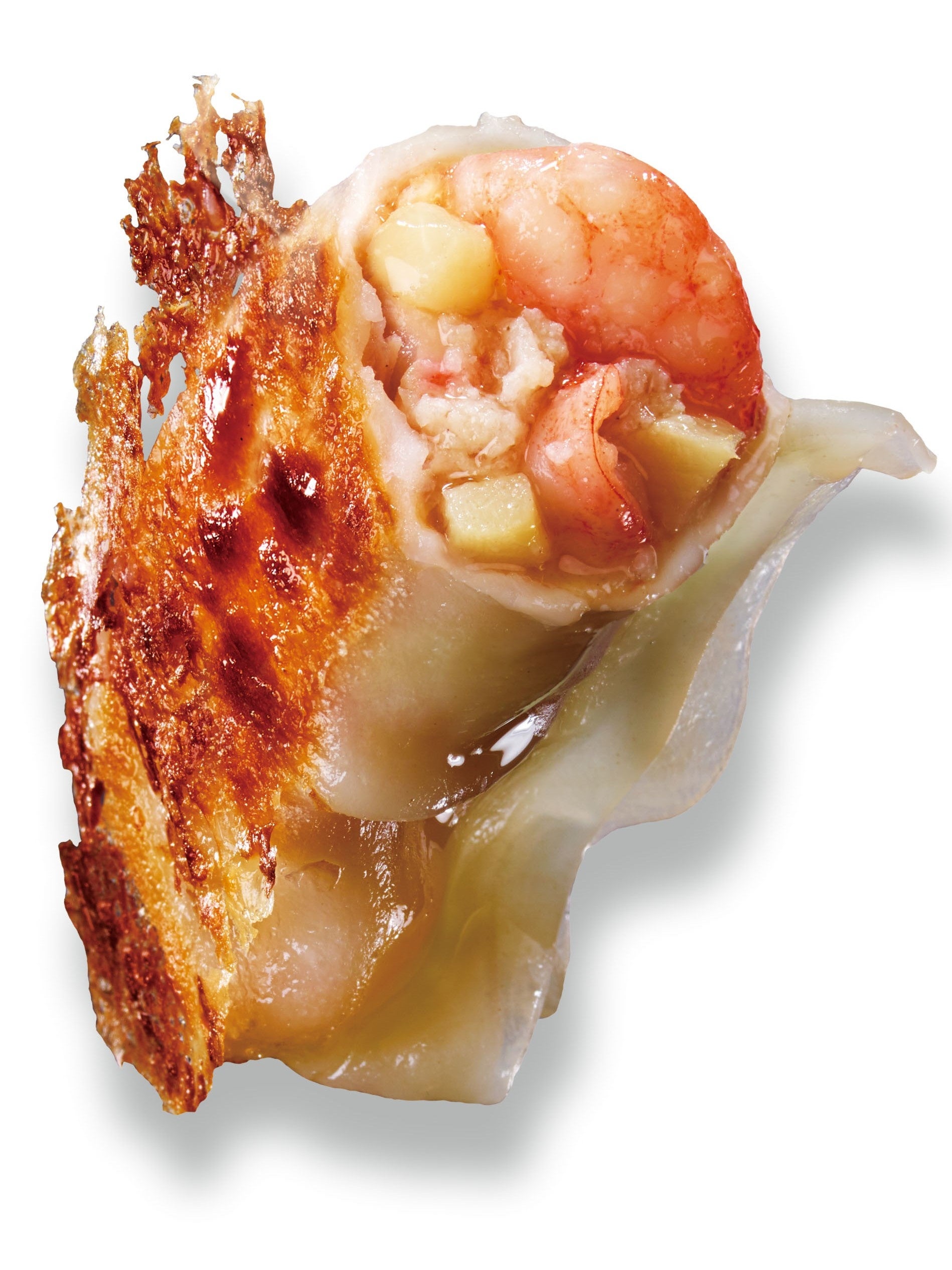 中具の約4割を占める海老のプリッとした食感と、海鮮のコク深い味わいの「海老大餃子」