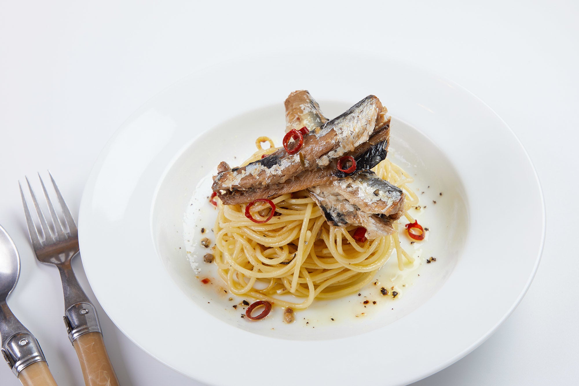 新鮮な海の幸に恵まれた女川だからこそ、実現できた真いわしのパスタソース。