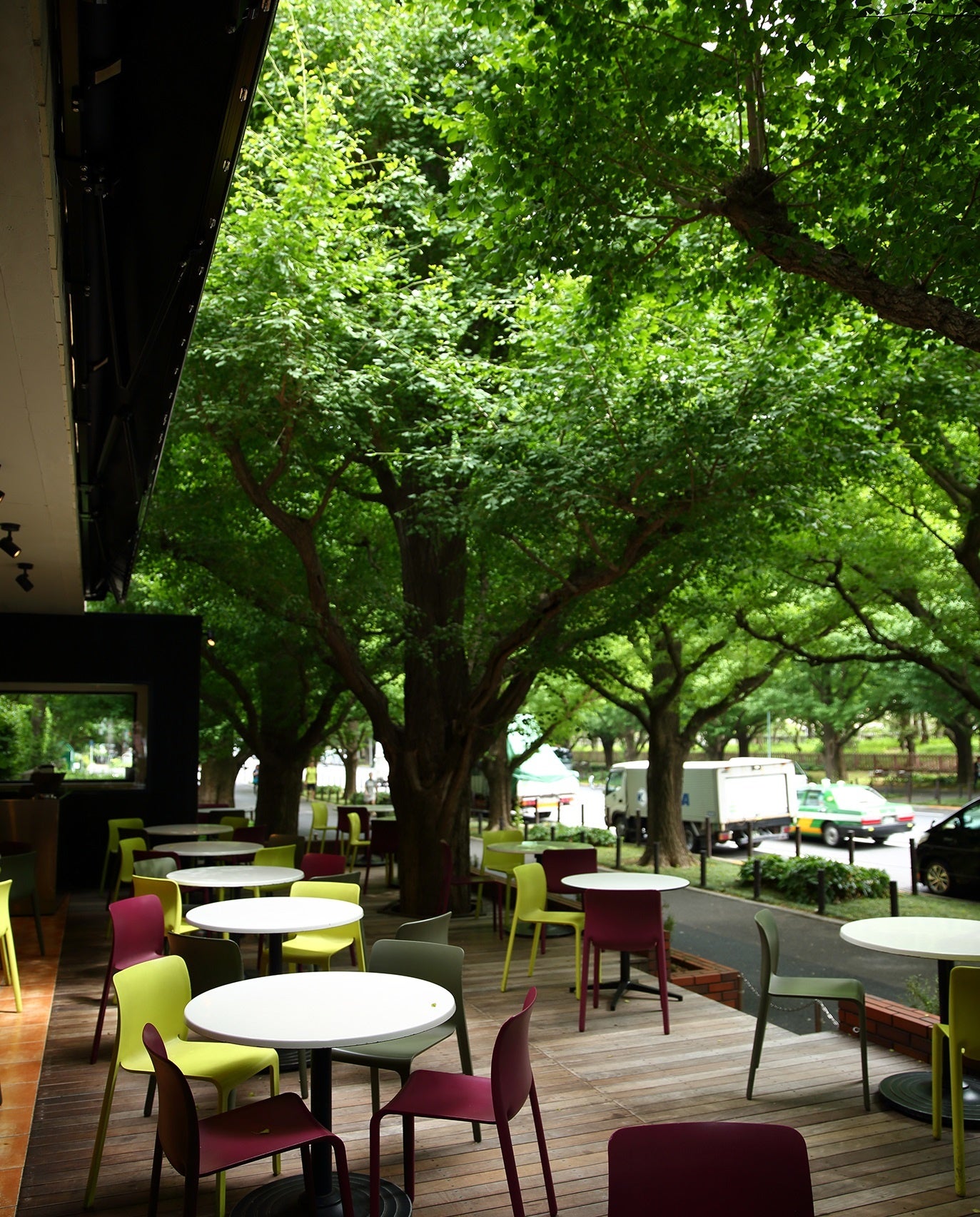 いちょう並木沿いにオープンテラスを構える青山本店。