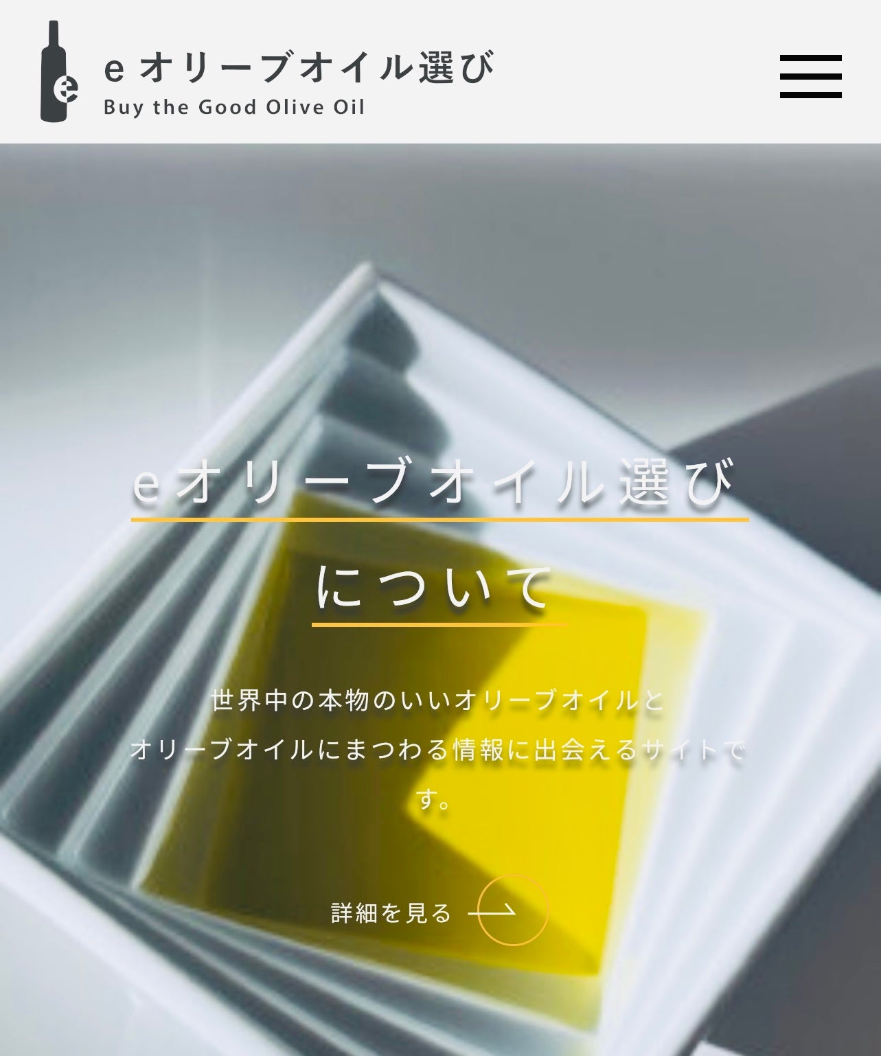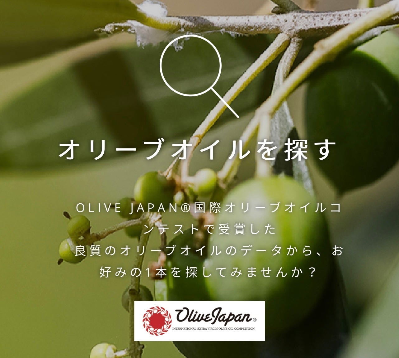 「eオリーブオイル選び」は、いつでも世界中の高品質オリーブオイルと、オリーブオイルにまつわる信頼できる情報に出会える、いいオリーブオイルにつながるサイトです。 このサイトは、オリーブオイルに関する基本知識や楽しみ方、レシピを紹介するだけでなく、世界TOP10の主要コンテストの一つに選ばれている「OLIVE JAPAN® 国際オリーブオイルコンテスト」の受賞商品が検索でき、その商品がどこで買えるかを簡単にご覧いただけます。(スマホ・PC対応) サイト利用は無料です。