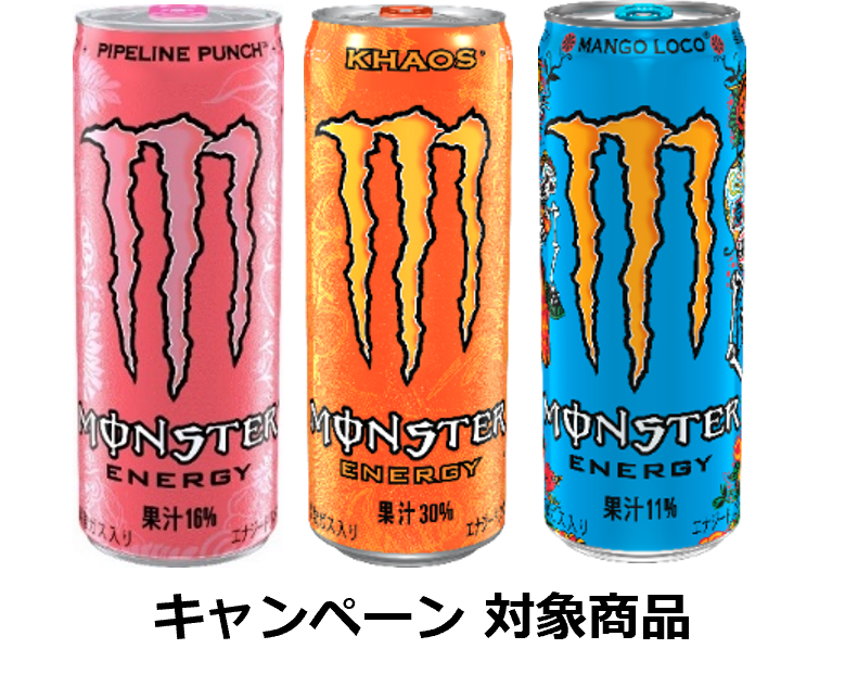 キャンペーン対象商品 :モンスター パイプラインパンチ、カオス、マンゴーロコ