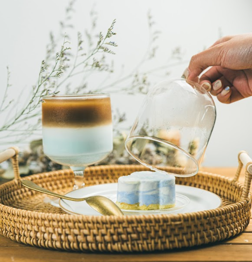 産寧坂とは違うオリジナルスイーツをご用意いたしました。カヌレ、バスクチーズケーキとドリンクを雲ノ茶らしい演出を添えて皆様に。目にも身体にも優しいメニューで癒されていただけますと幸いです。