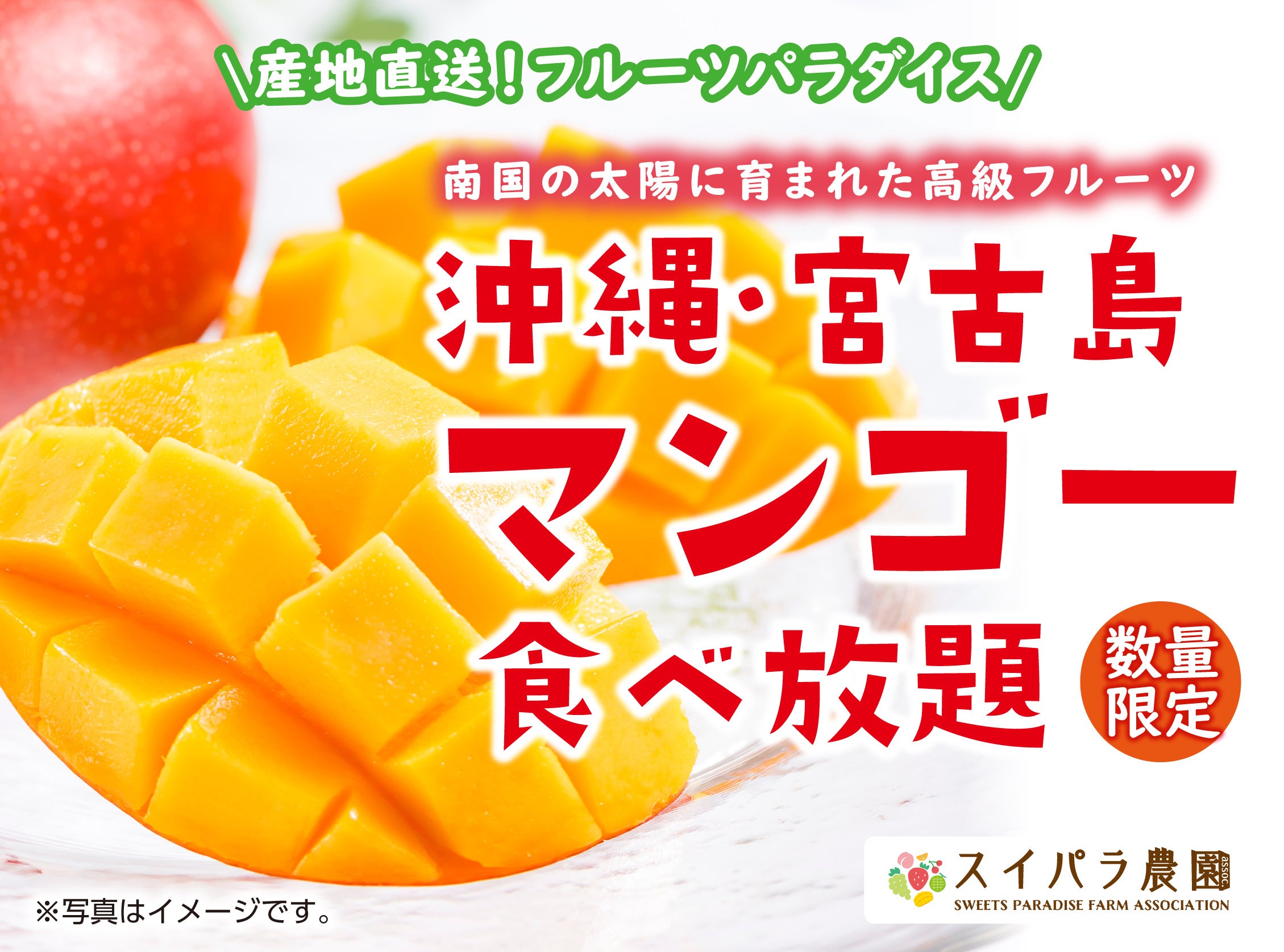 2022年7月8日(金)からのフルーツパラダイスに、スイパラ史上初となる国産のマンゴー“沖縄・宮古島マンゴー”が食べ放題で登場いたします!