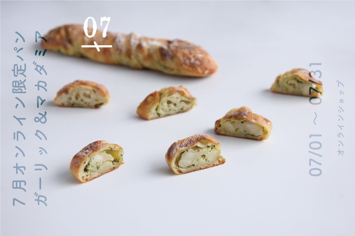 7月は、おつまみにも最適のガーリックパンを焼き上げます。
