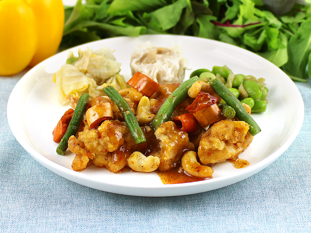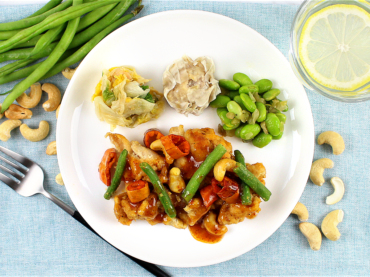 鶏もも肉のから揚げを、唐辛子とカシューナッツを合わせた辛味ソースで仕上げました。麻辣醤と山椒たれを合わせた刺激的な辛さになっております。唐辛子も食べられますのでパリパリ食感をお楽しみください。