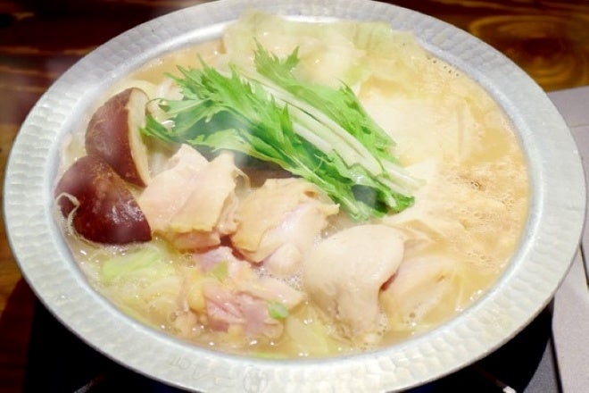 博多で生まれた店主が試行錯誤の末に完成させた「博多水炊き」。長い時間煮込むことで白濁する鶏ガラスープ