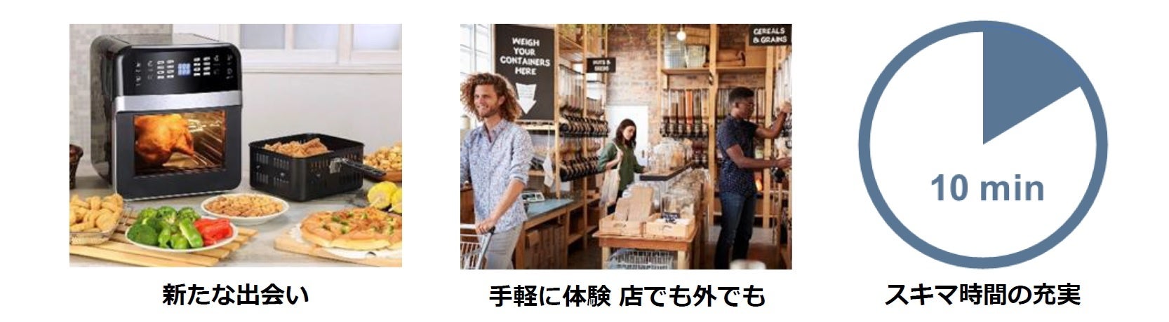 ●使ってみたいけど、失敗したくない、買うと決めるまでに時間や手間がかかる、そんな商品を店頭で体験やレンタルして自宅で手軽に体験できます。