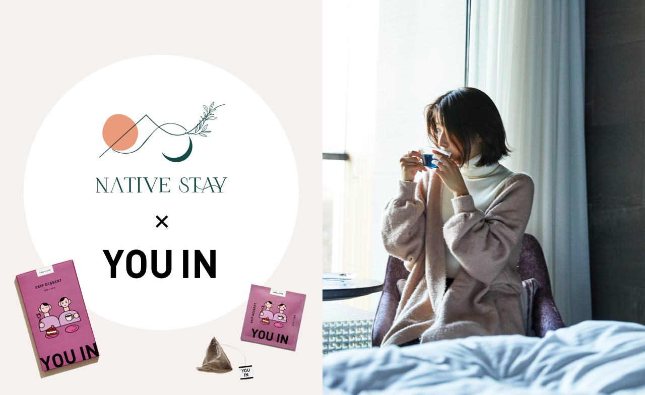 「NATIVE STAY」は、「日常の延⻑線にある、だけど、ずっと叶えたかった暮らし」をコンセプトに、日常の延⻑線上にある「NATIVE」な体験を6つのコンテンツで楽しめる宿泊プランです。今回、6つのコンテンツのひとつ「飲む」のウェルカムティーとして、「YOU IN」のムードペアリングティーをお楽しみいただけます。