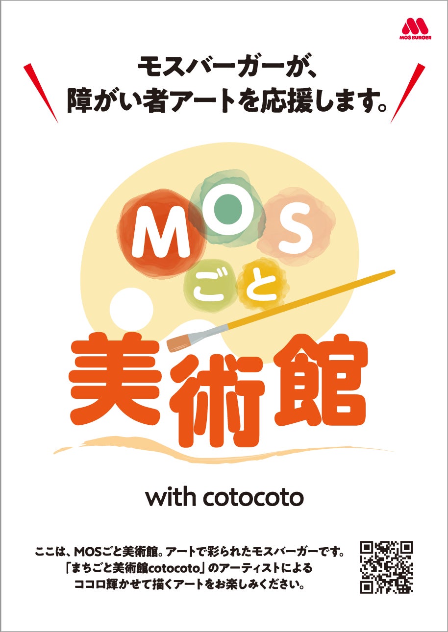 当社では、新潟県の「まちごと美術館cotocoto」事業に賛同し、2016年から新潟県にお住まいの障がいのある方々が描いたアート作品をモスバーガー店舗で展示する企画「MOSごと美術館」を開催してきました。2016年~2018年までの3回は新潟県の店舗のみで開催し、2019年は新潟県に加え、「東京MOSごと美術館」として、初めて都内10店舗でも開催しました。翌2020年には都内近郊の福祉施設を対象に障がいのある方のアート作品を公募の上114作品を選出し、東京・横浜の30店舗にて展示を行う予定でしたが、新型コロナウイルス感染症拡大の影響により、実店舗での展示ではなく、オンライン上で作品を公開しました。一部作品はモスフードサービス本社の受付ロビーや会議室などでも展示いたしました。2021年はアート作品を店舗の内装デザインに使用し、持続可能な社会づくりヘ向けた取り組みを表現するフラッグシップ店舗として「モスバーガー原宿表参道店」をオープンしました。弊社公式サイトでは、原宿表参道店を訪れたようなバーチャル・リアリティ映像で、「VR MOSごと美術館」を体験することもできます。
