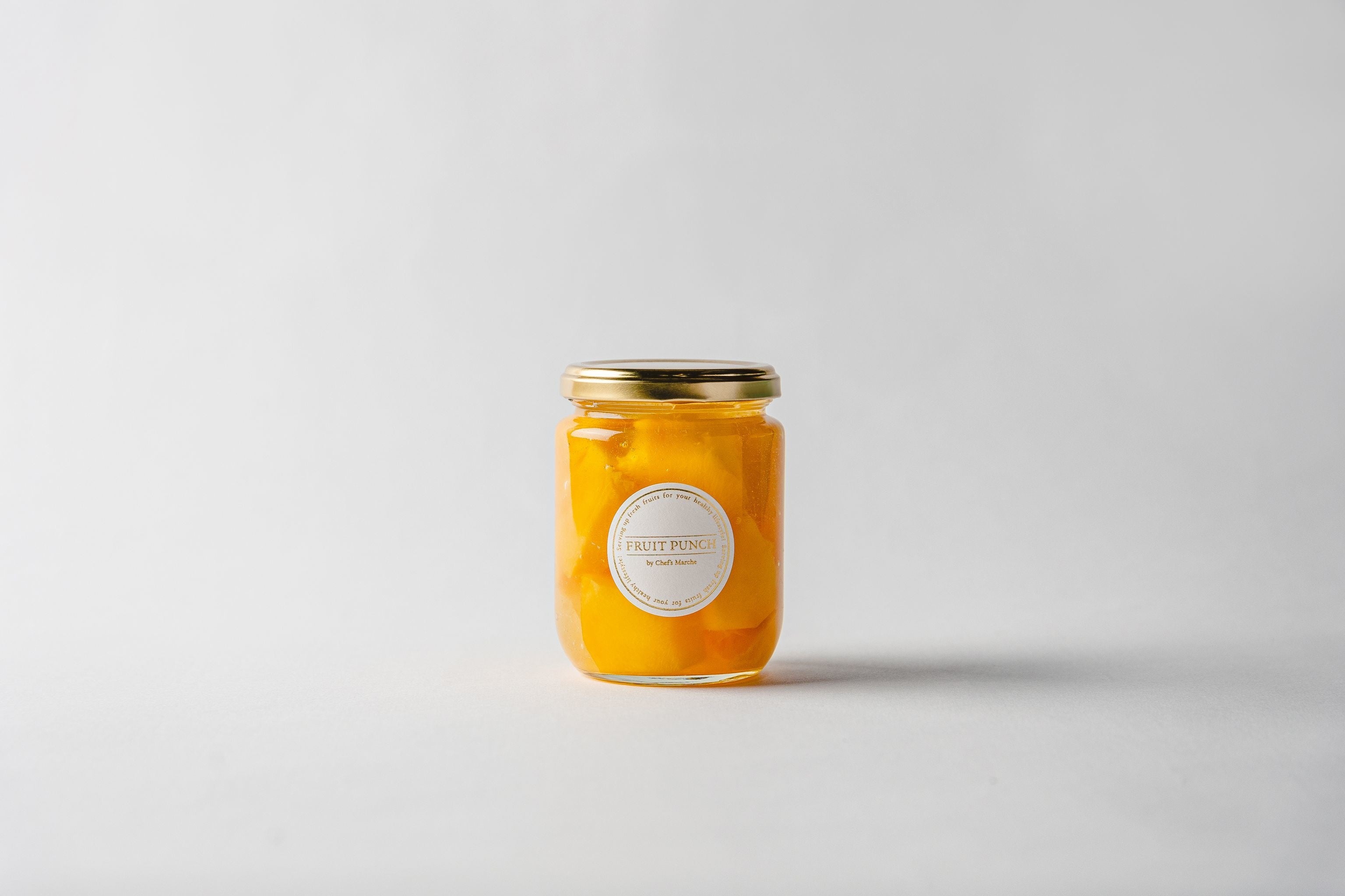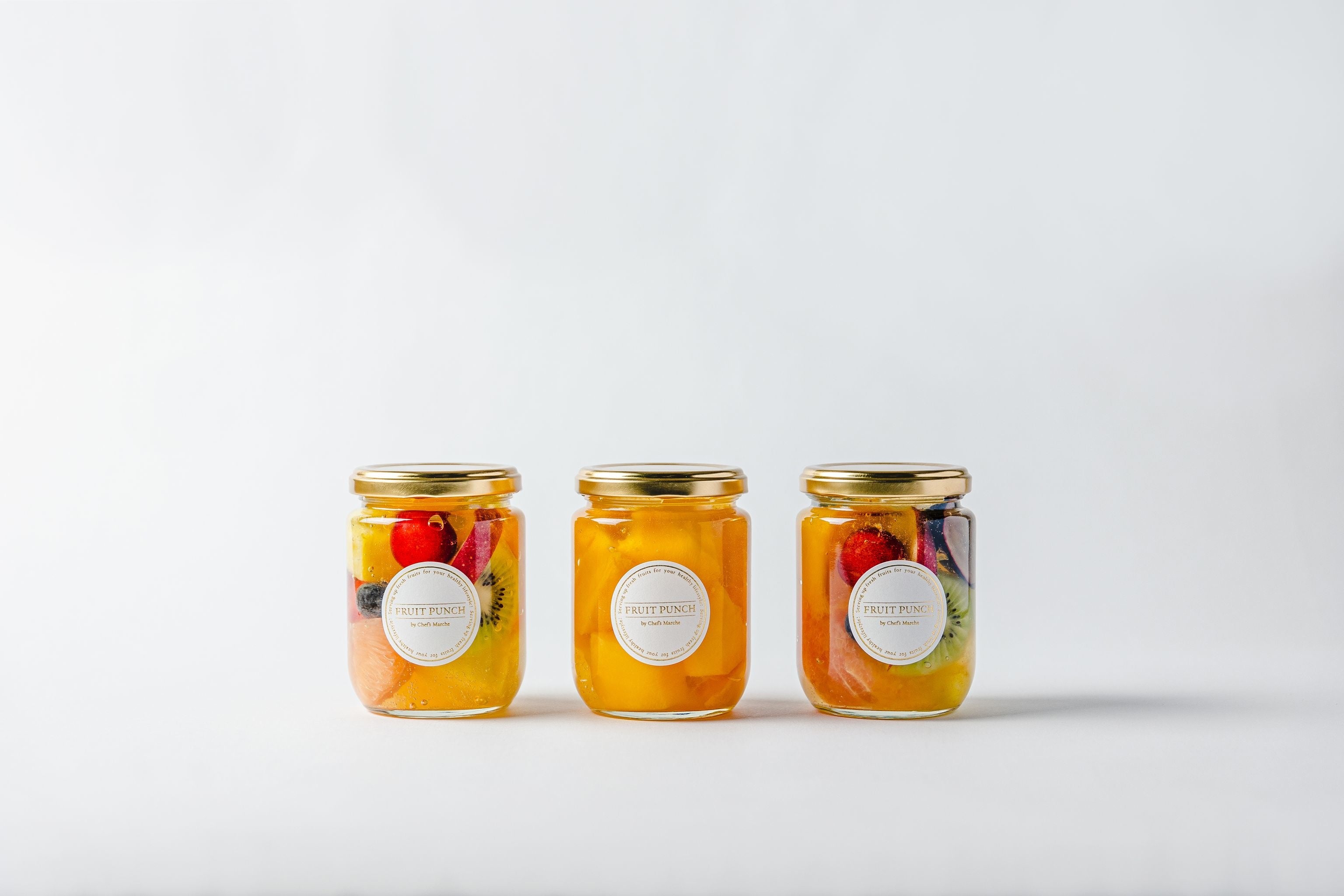 一般的なフルーツポンチは、シロップでフルーツを漬け甘みを加えていますが、Chef’s Marcheのフルーツポンチは、人工甘味料不使用でりんごジュースを使ったゼリーでフルーツを優しく閉じ込めています。