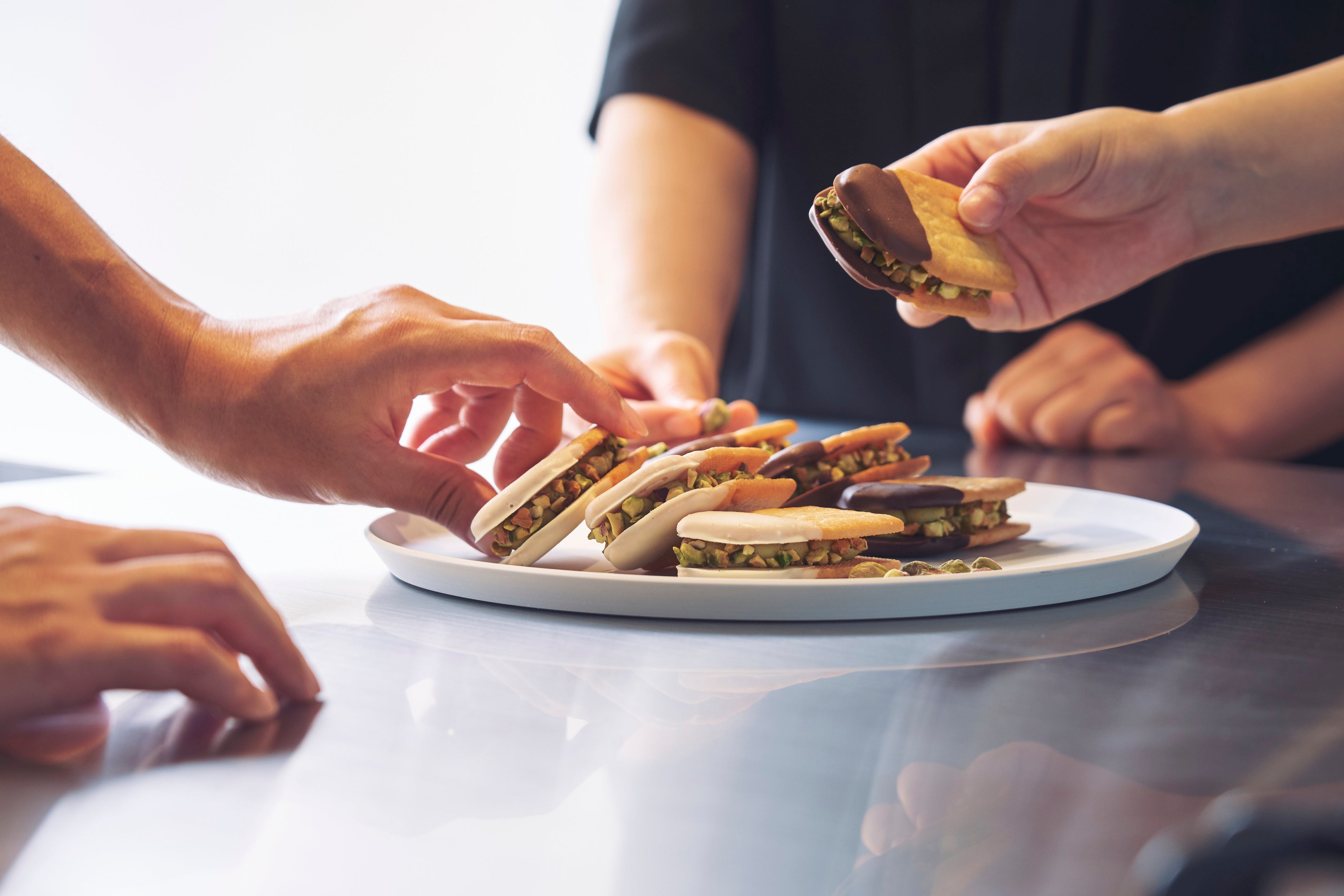 ○ ピスタチオをたっぷりと楽しんでもらうために。パティシエがこだわり抜いた贅沢生バターサンド