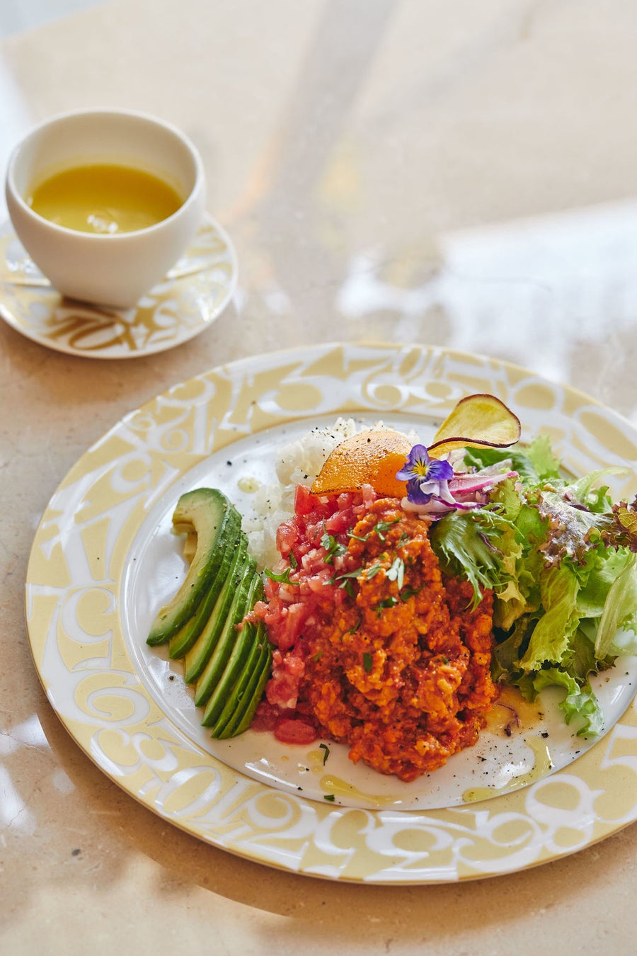 2022年7月1日に京都市内寺町にオープンするRECIPE all day cafeは、“豊かな生活であること”の根本にある「健康な自分自身」を改めて考えるきっかけを提供する空間を目指すカフェです。シェフの藤田毅晃氏が自ら厳選した新鮮な食材を使用したレシピを考案し、そこにサッカー界の第一線で活躍する長友佑都氏専属シェフである加藤超也氏のエッセンスを加え、両者の経験と技術が融合したメニューが並びます。今回のコラボレーションでは、RECIPEのスペシャルランチセットをフランク ミュラーのテーブルウェアでご提供します。