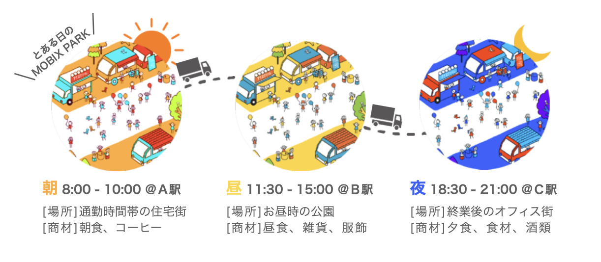 さらにはキッチンカーだけでなく、MOBIX(Mobility Box=移動する箱)と称した様々な移動販売車を展開することで、 「店に行く」から「店が来る」文化創造を行い、移動できるからこそのメリットを生かして、住宅団地や公園、商店街な どの活性化・地域創生を行っています。