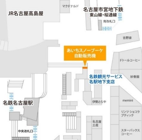 キャンペーン開始の7月1日(金)からは、名鉄名古屋駅において「あいちスノーブーケ」デザインのフルラッピングをした期間限定(9月末まで)で設置する自動販売機においてもチケットを販売開始しました。