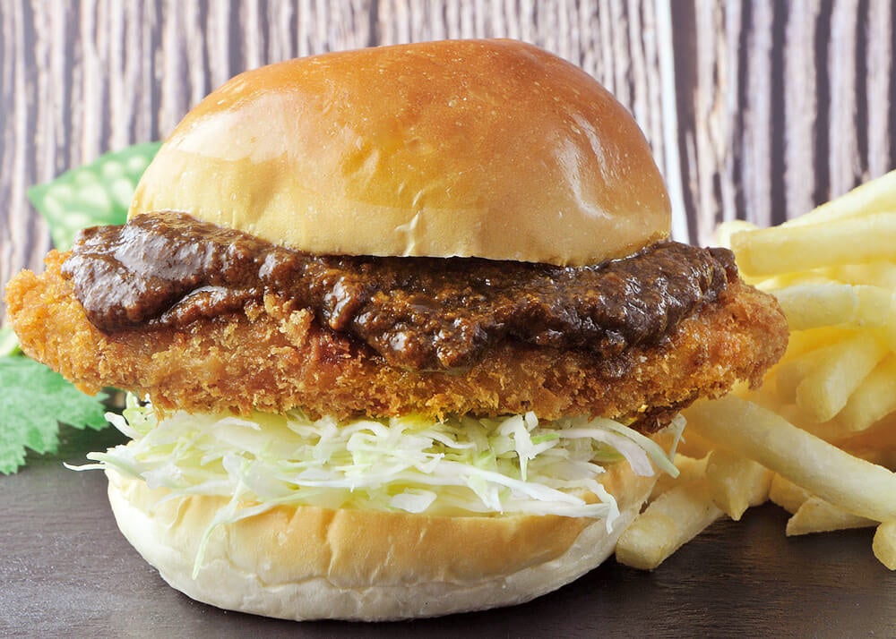 本家の銀座スイスのカレーソースを使った「カツカレーバーガー」も販売!