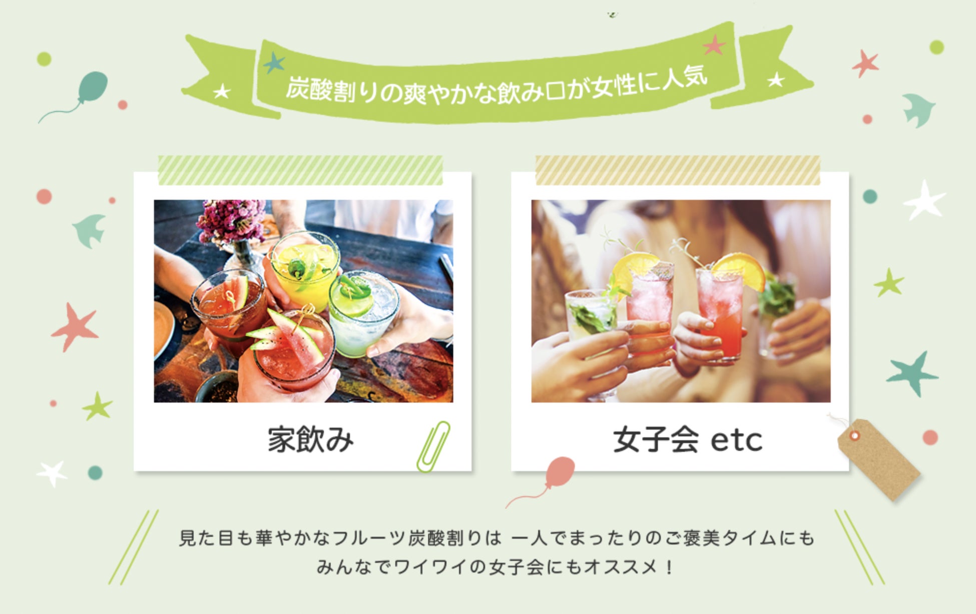 夏らしい「炭酸割り」や「炭酸×フルーツ割り」でお楽しみくださいませ。