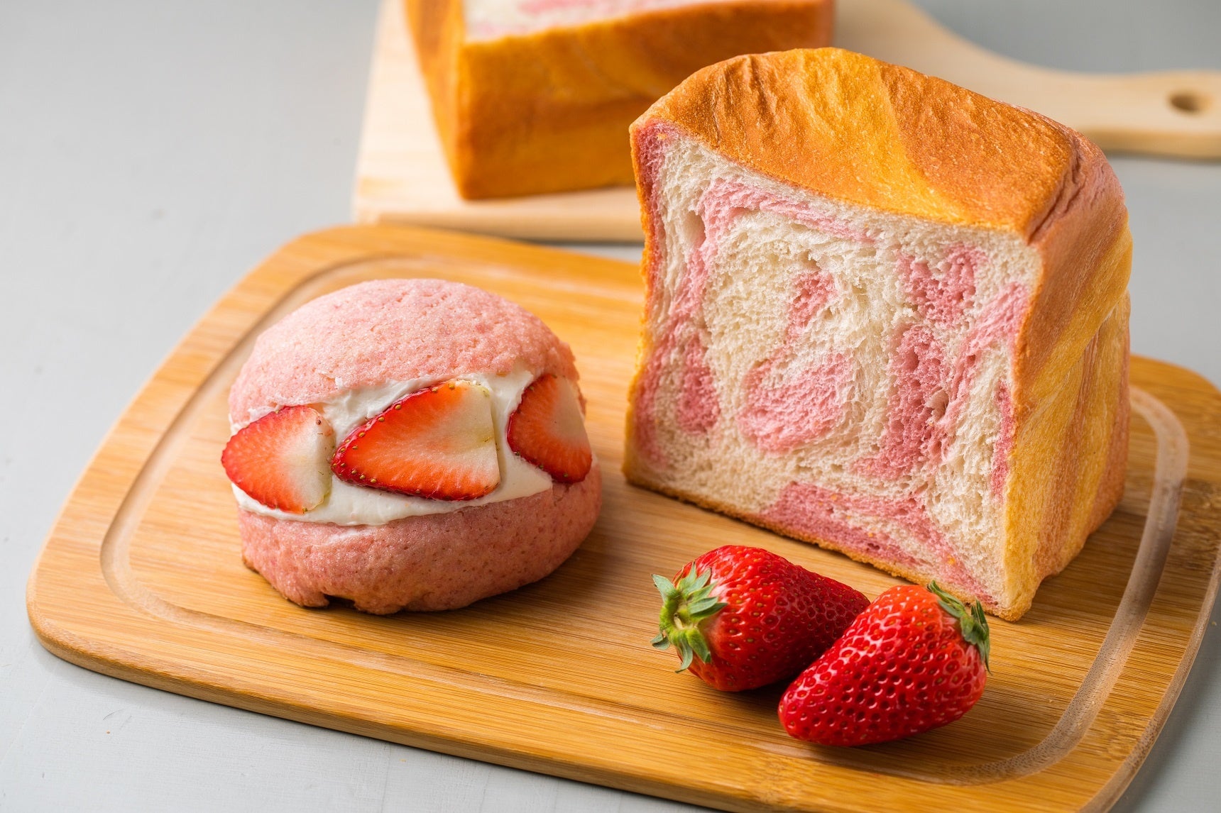 また、シロクマベーカリーではコラボレーションアイテムの限定カラーや今回のコラボを記念した新作の「クリームいちごメロンパン」「いちごマーブルらうす食パン」を発売致します。