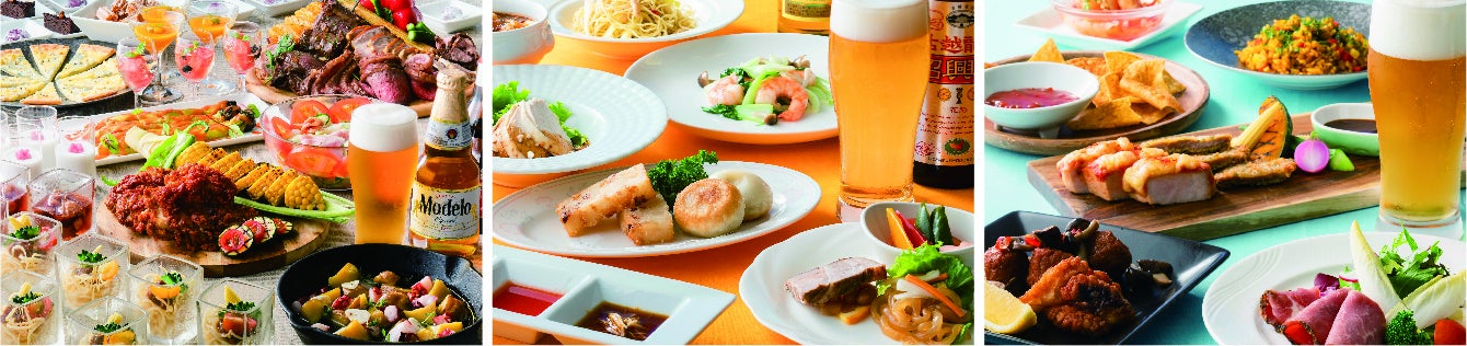 さらに、フリードリンクには生ビールをはじめ、プレミアムイタリアンビールや珍しいメキシカンビール、カクテル、モクテル(ノンアルコールカクテル)など50種以上を取り揃えます。お酒好きもそうでない方もお楽しみいただける充実のラインアップをお楽しみください。