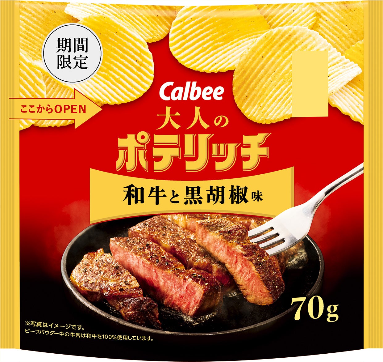 カルビー株式会社(本社:東京都千代田区、代表取締役社長:伊藤 秀二)は、素材の組み合わせにこだわった濃厚リッチな味わいが楽しめる「大人のポテリッチ」シリーズより、牛肉の旨みと黒こしょうの程よい辛みが楽しめる新商品『大人のポテリッチ 和牛と黒胡椒(くろこしょう)味』を2022年7月11日(月)から、全国のコンビニエンスストア限定で発売します。 ※期間限定、2022年8月下旬終売予定。