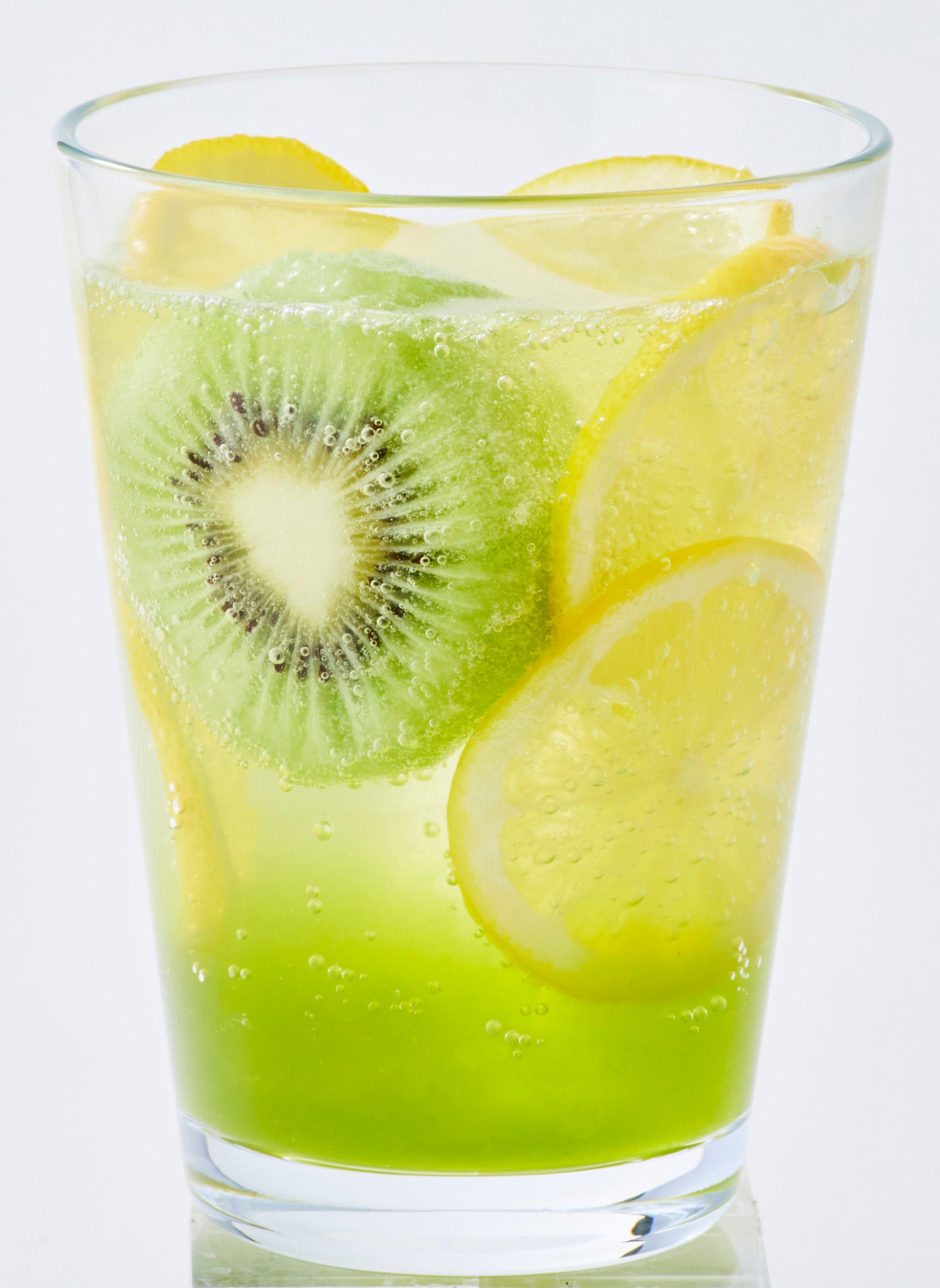キウイの果実氷に、はちみつ漬けしたレモンスライス、キウイシロップが入った優しい爽やかな甘みのソーダ。