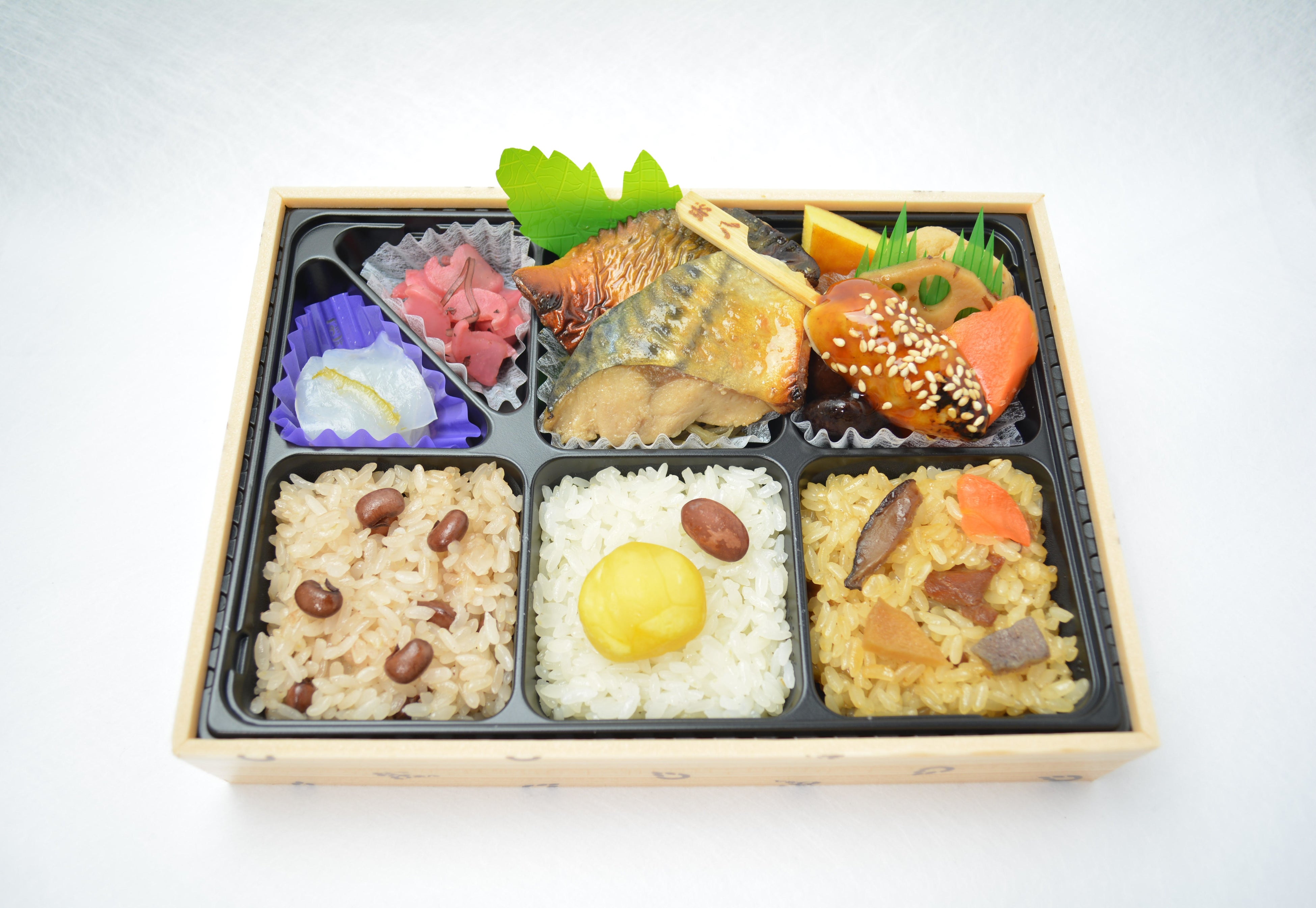 脂のりの良い鯖の味噌焼きや軟骨入りのオリジナルつくね串、おこわも3種類入ったお弁当です。