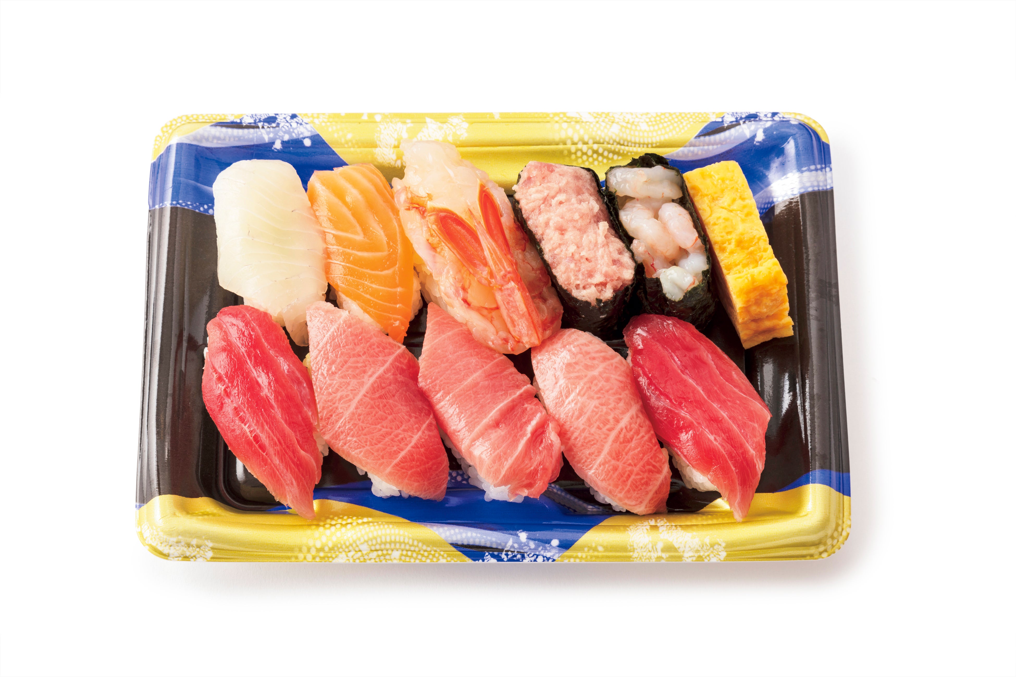 プロが目利きした、生マグロ5貫のほか厳選した素材で仕上げた鮮度抜群のにぎりを加えた全10貫のセット。