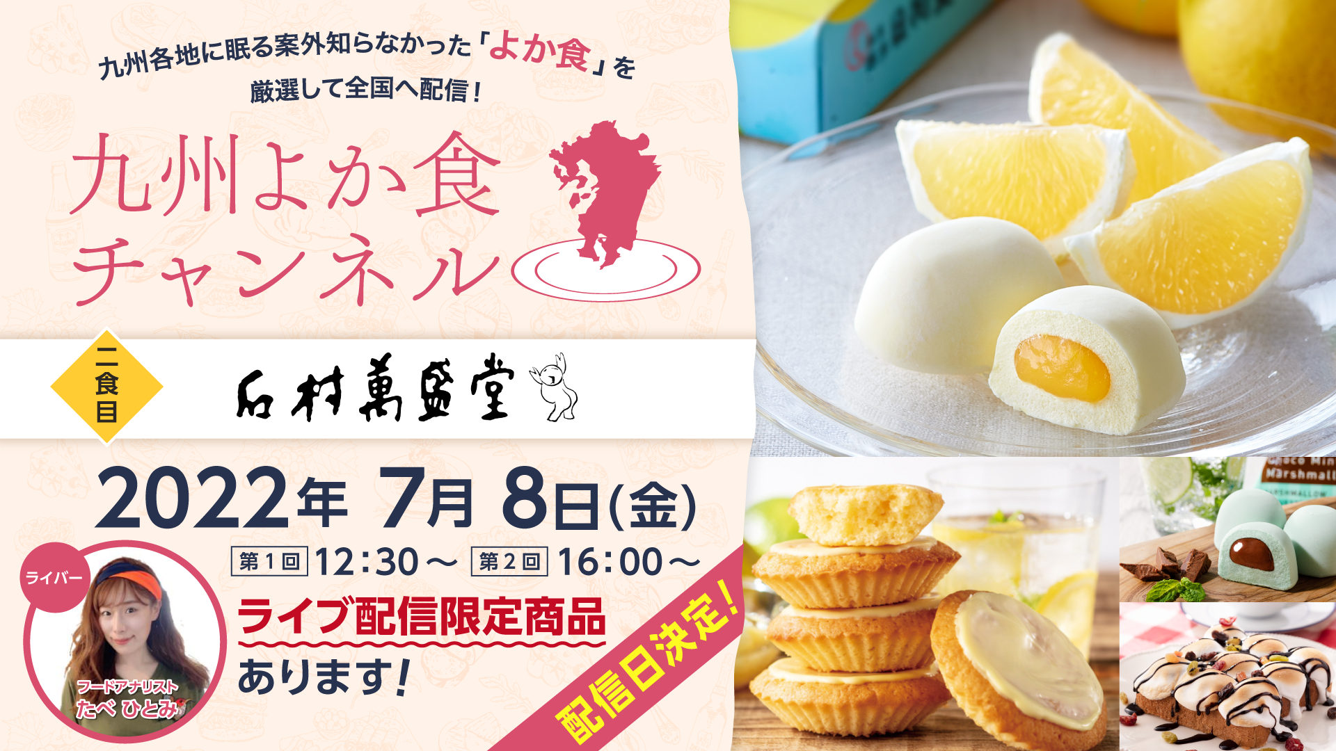 株式会社クリップス(東京都渋谷区)が運営するライブコマースプラットフォームSharingLiveにて、凸版印刷株式会社の独自配信チャンネルである『九州よか食チャンネル』の第2弾が7/8(金)12:30~/16:00~に配信予定です。