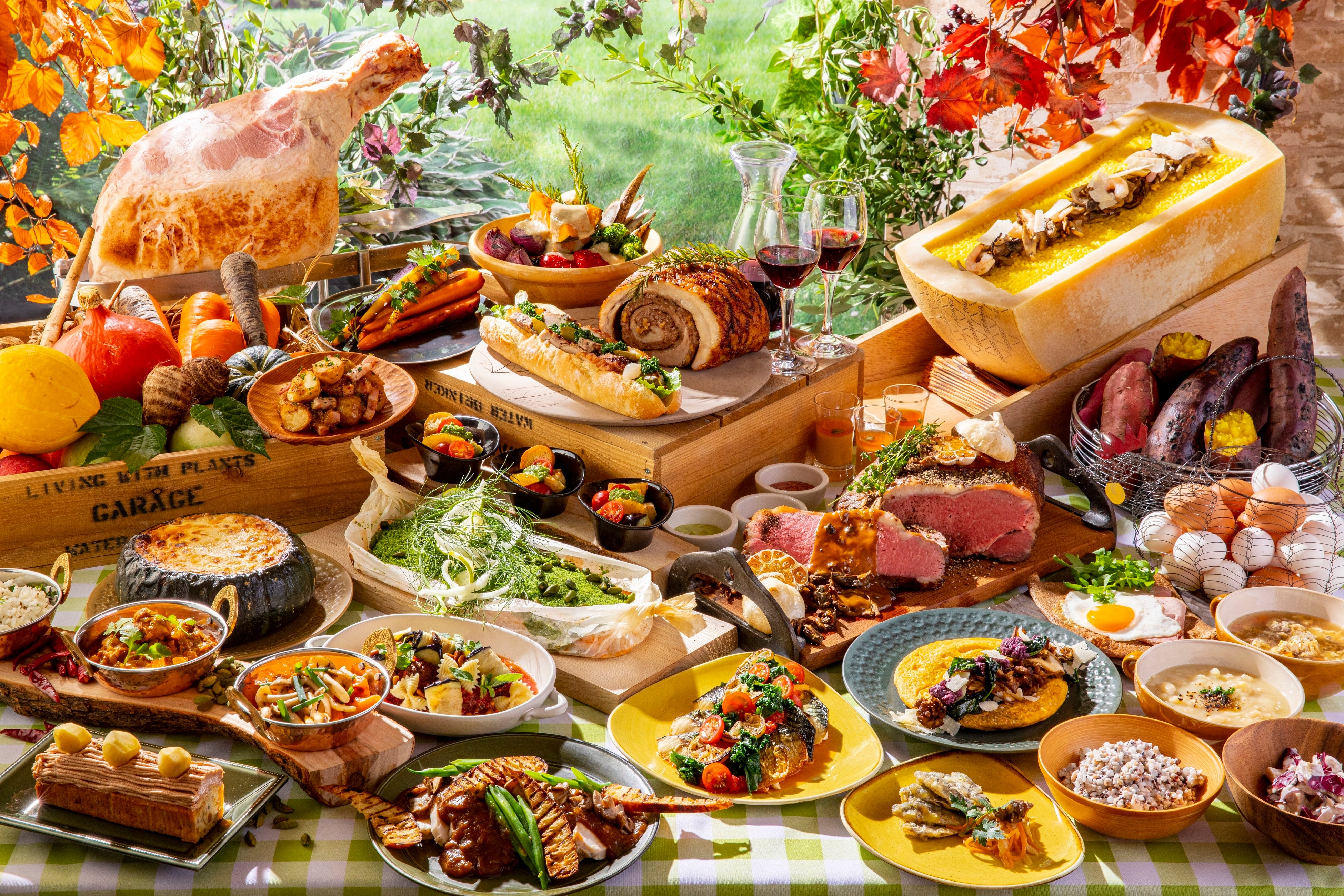 収穫祭を彩る肉料理や魚料理に加え、イタリア風ミートボール「ポルペッティカルネとメランザーネ、ファルファッレ」やイタリア風かき玉スープ「スープミルファンティ」、とろりとした食感が特徴のトスカーナの郷土料理「白いんげん豆とサツマイモのリボリータ」など、家族で囲むあたたかい食卓を彷彿させるイタリアの家庭料理の数々もご堪能いただけます。また秋を感じさせつつも、「揚げ茄子とオレンジ、バジルのパンツァネッラ」や「十六穀米とチアシードのグレインズサラダ ココナッツ風味 タピオカのテクスチャー」など、本格的な冷製料理も勢揃い。