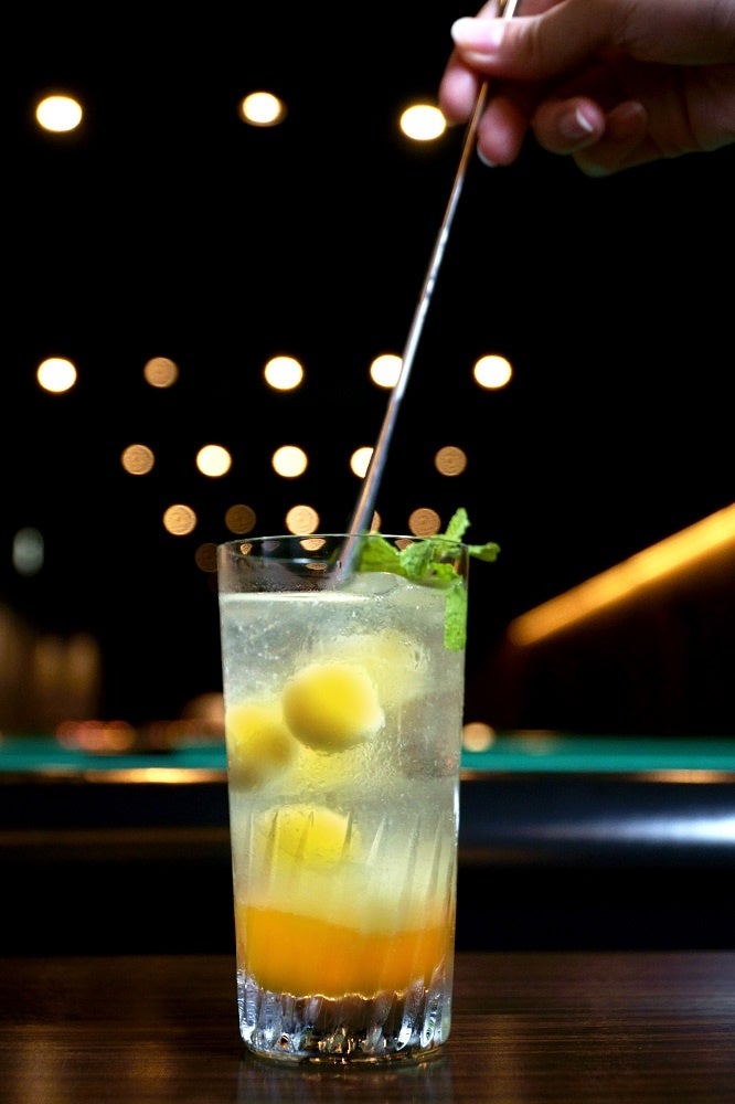 マンゴー、グレープ、ピーチのフレーバーシロップに焼酎、ソーダを加え、みずみずしい味わいのカクテルに仕上げました。アイスボールを崩せばフローズンカクテルとしてもお楽しみいただけます。